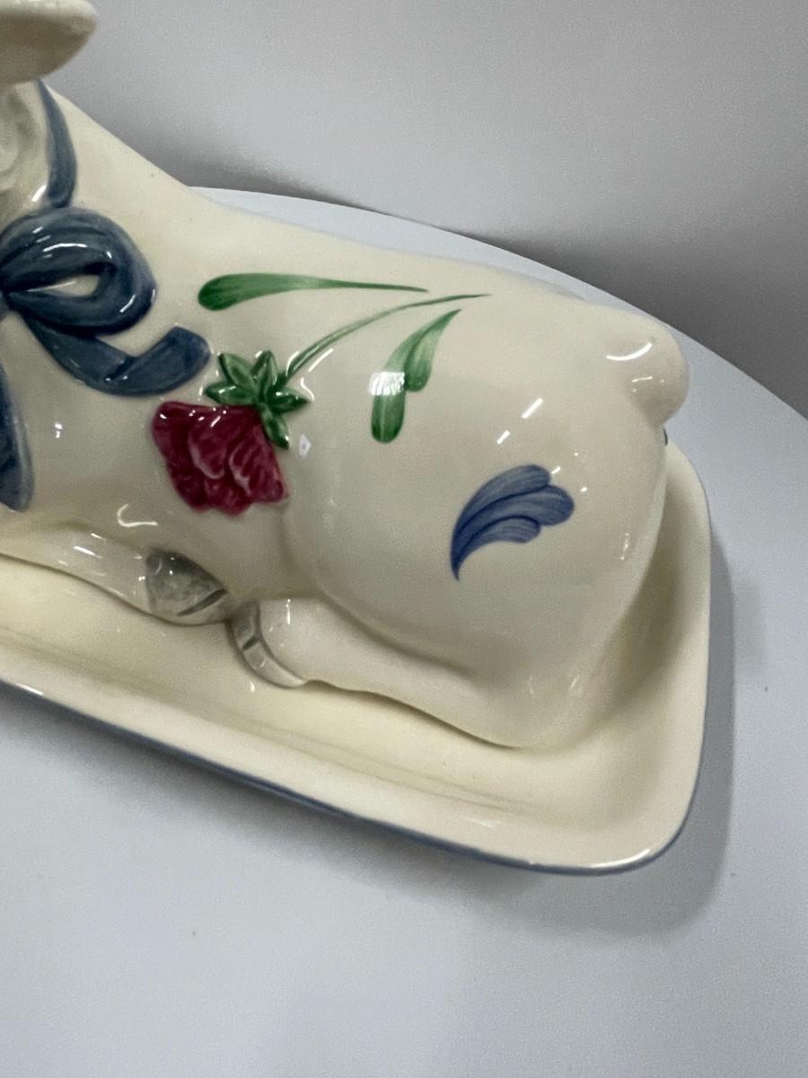 Lenox Poppies On Blue Barnyard Collection Lamb Butter Dish