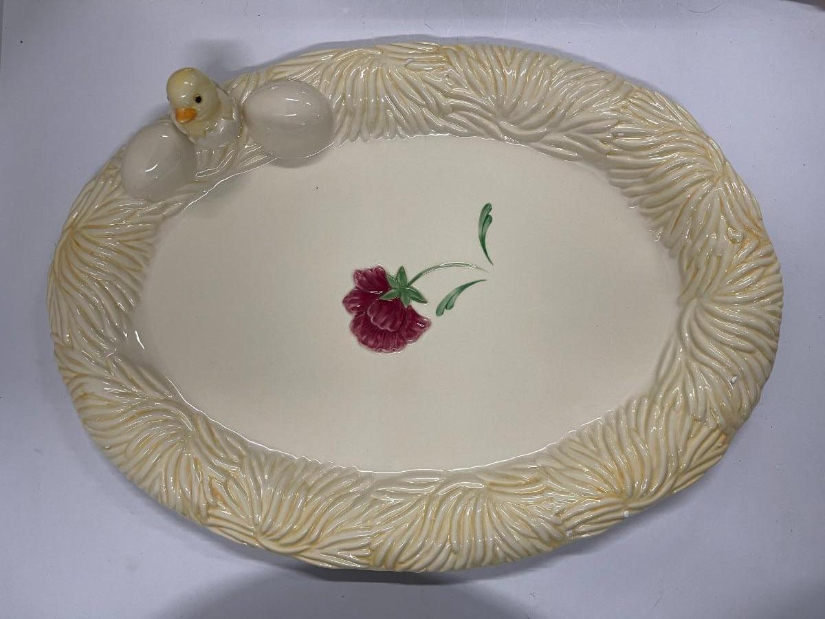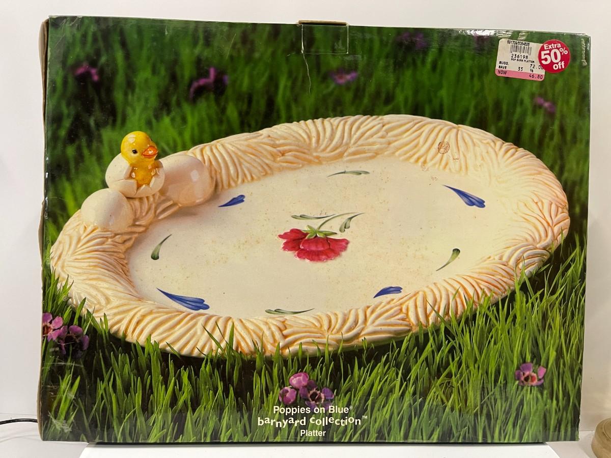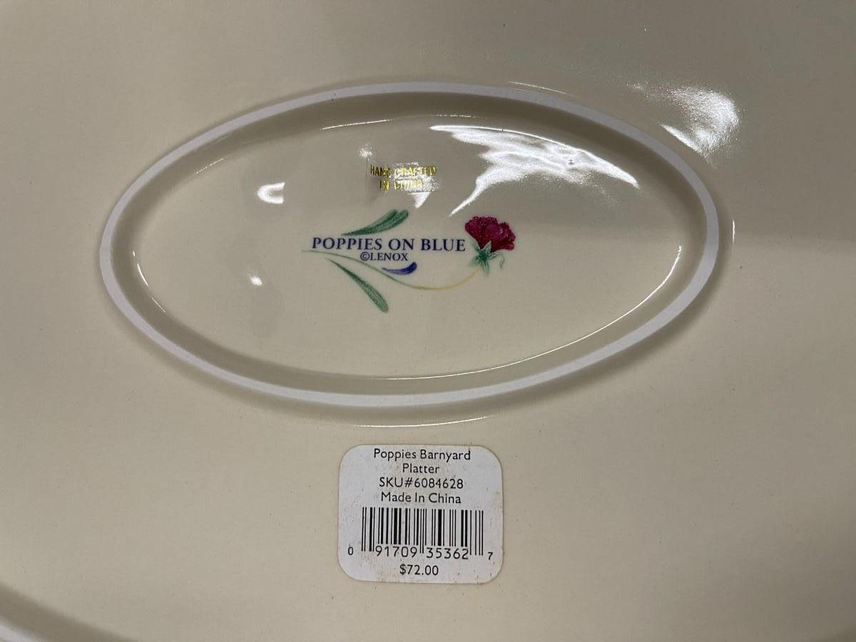 Lenox Poppies on Blue Barnyard platter, 15". Comes in original box. Platter is like new, box shows some wear.