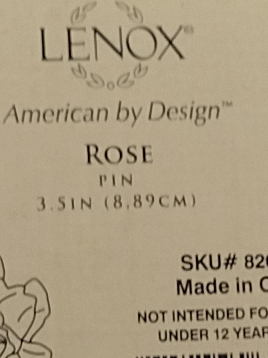 Lenox Porcelain Rose Design Pin- Approx 3 1/2" Long