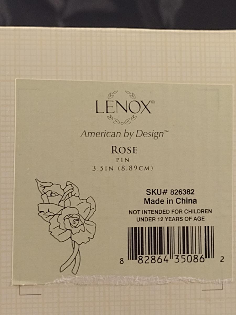 Lenox Porcelain Rose Design Pin- Approx 3 1/2" Long. Original box included.