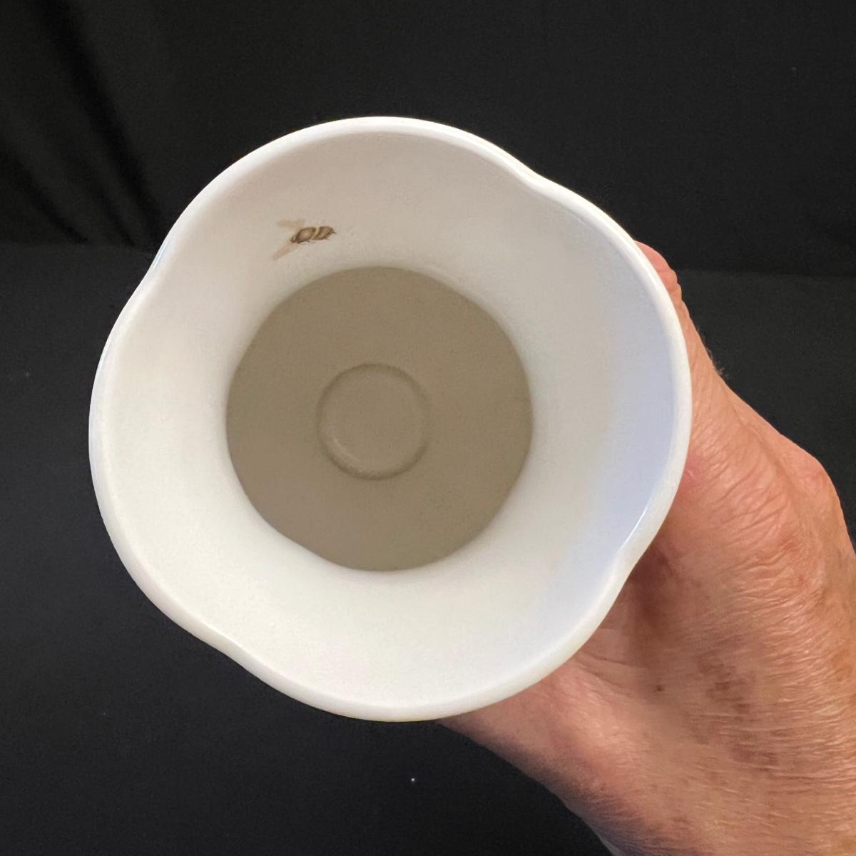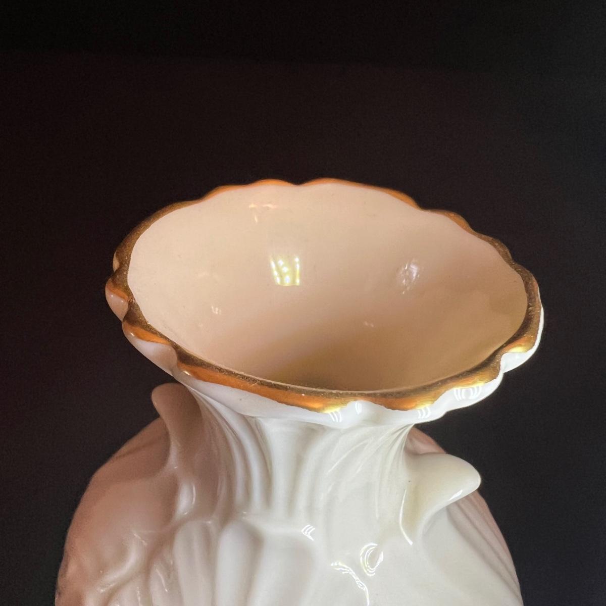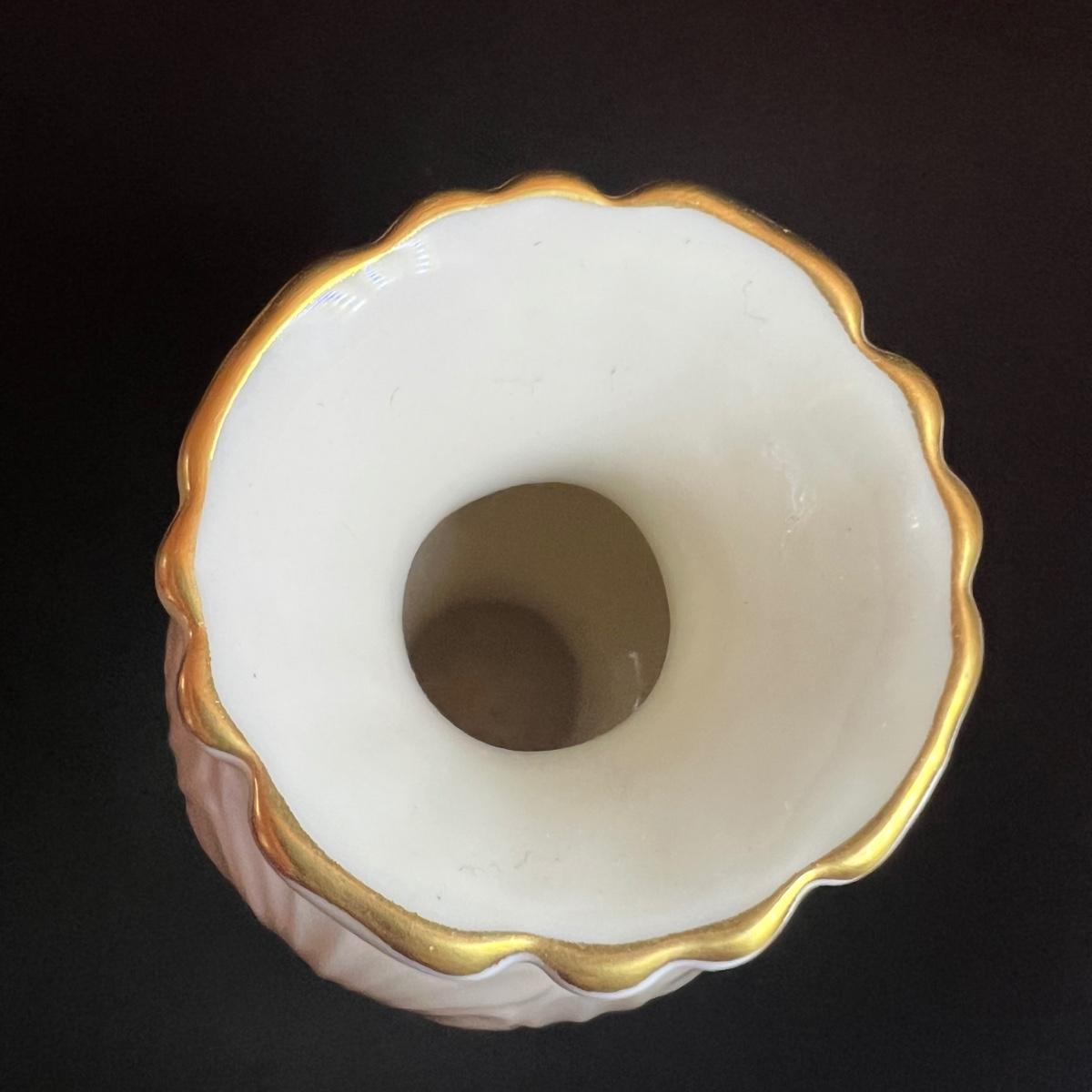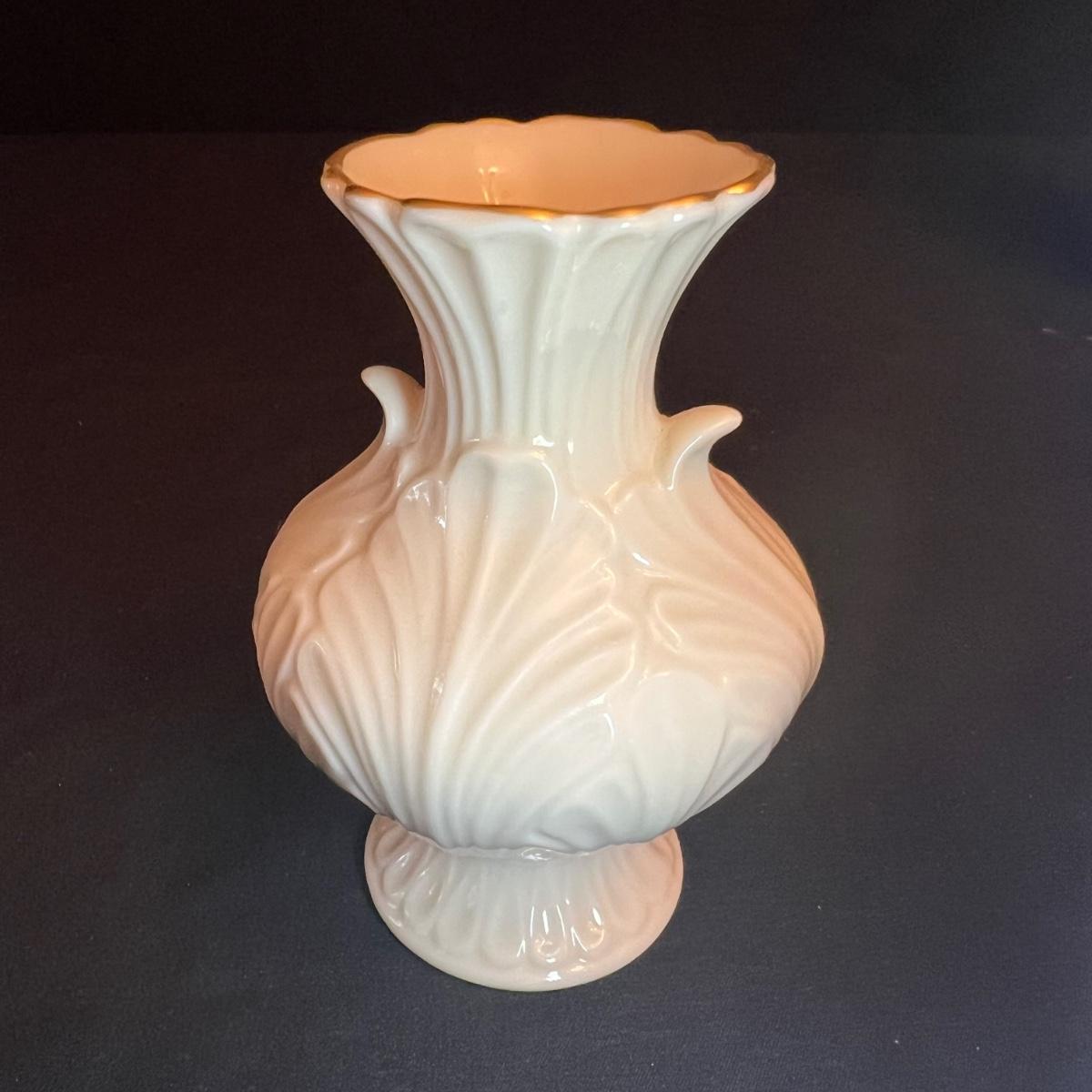 These four Lenox items includes three similarly glazed pieces - a swan with 24K gold embellishments, a small vase, and a larger vase. The ‘Butterfly Meadow’ vase with pink flowers and a pale yellow butterfly measures 3.5”D x 10.5”H.