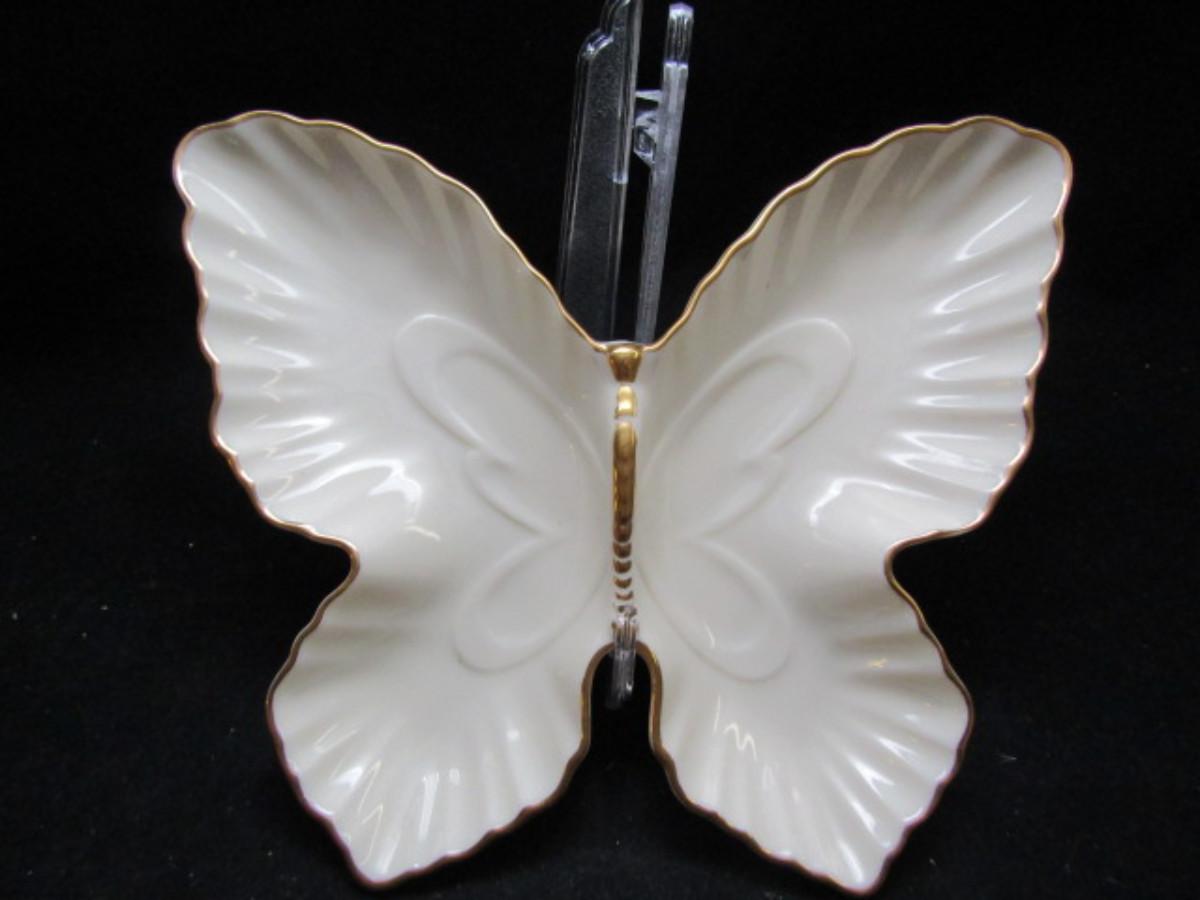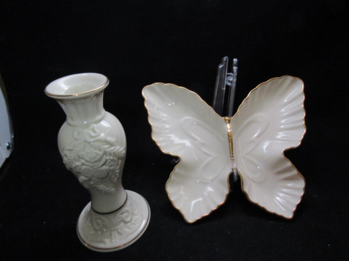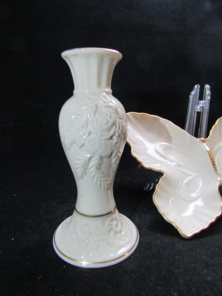 Lenox Porcelain Vase and Butterfly Trinket Dish in Classic Ivory and Gold  (#472)
