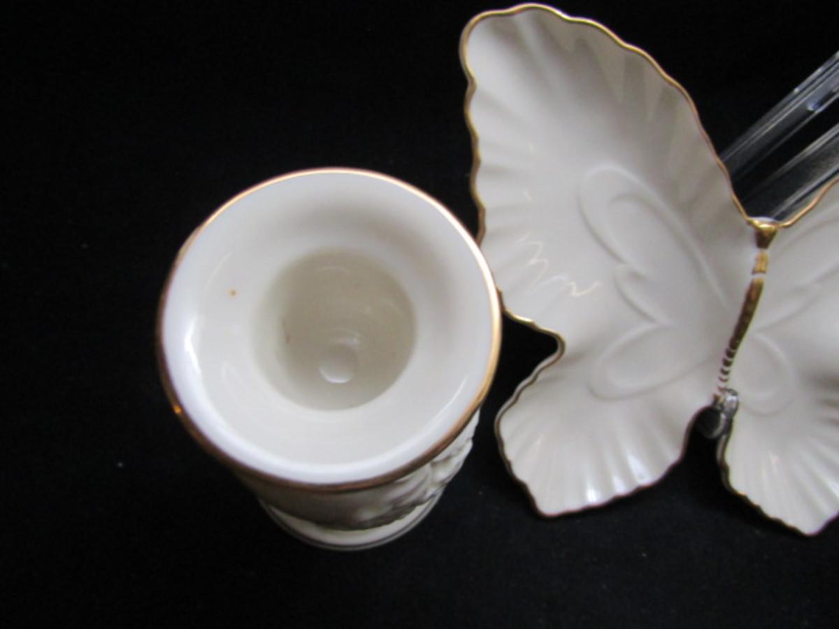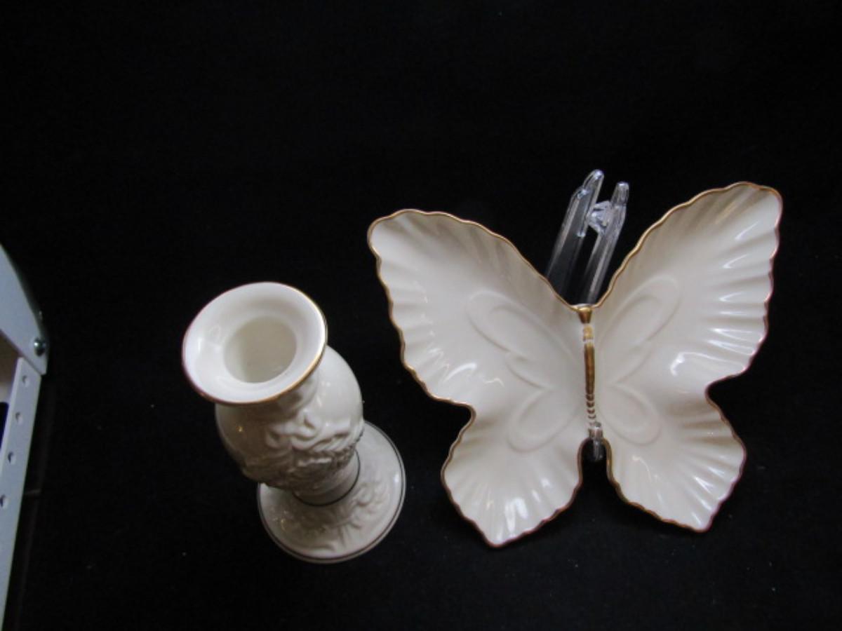 Lenox Porcelain Vase and Butterfly Trinket Dish in Classic Ivory and Gold (#472)