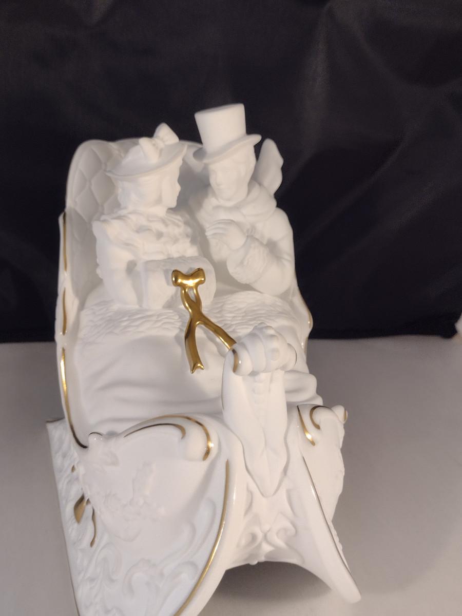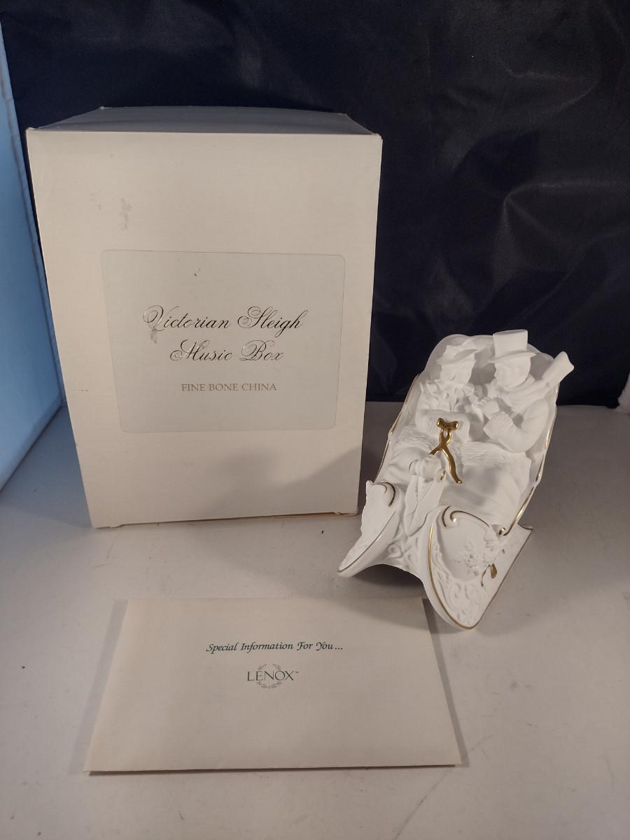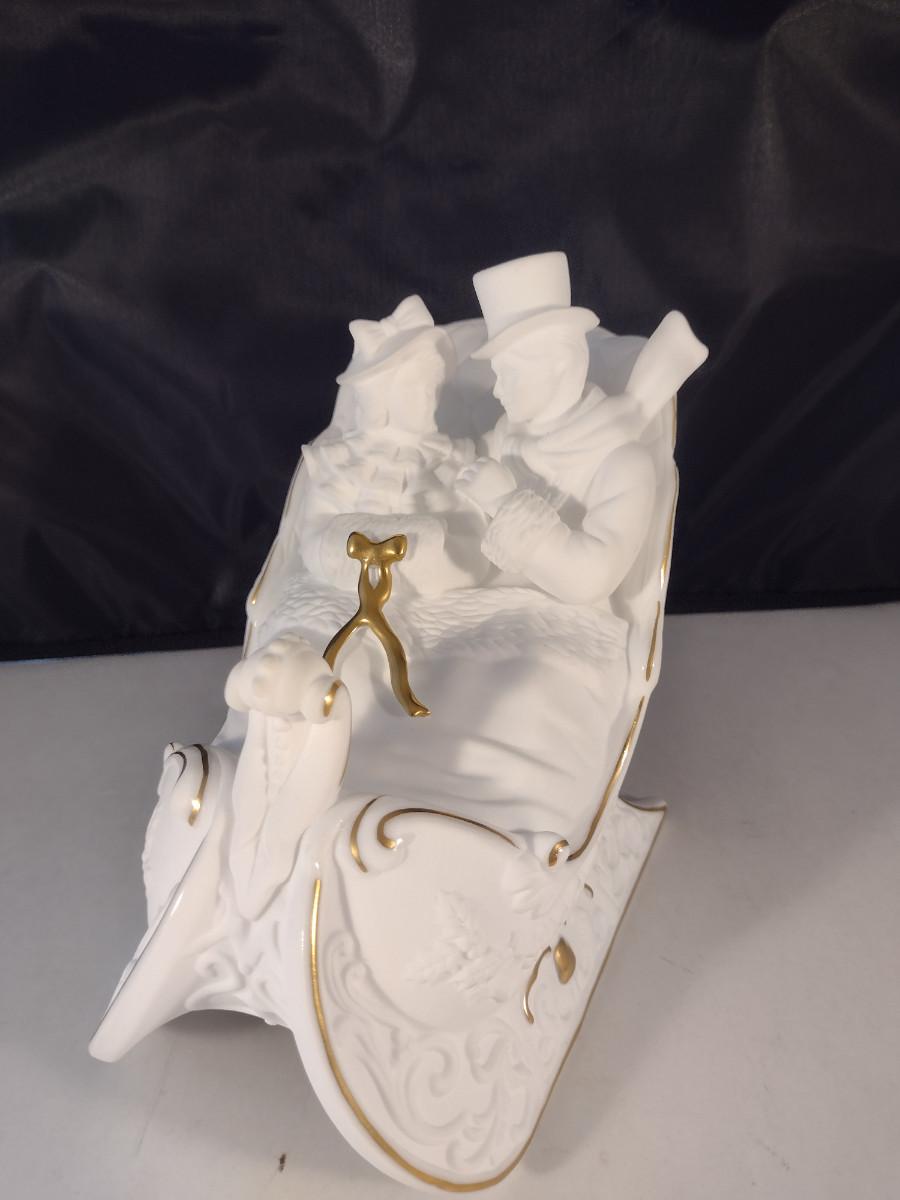 Lenox Porcelain Victorian Sleigh Music Box Plays "I'm Dreaming of a White Christmas". Original box included.