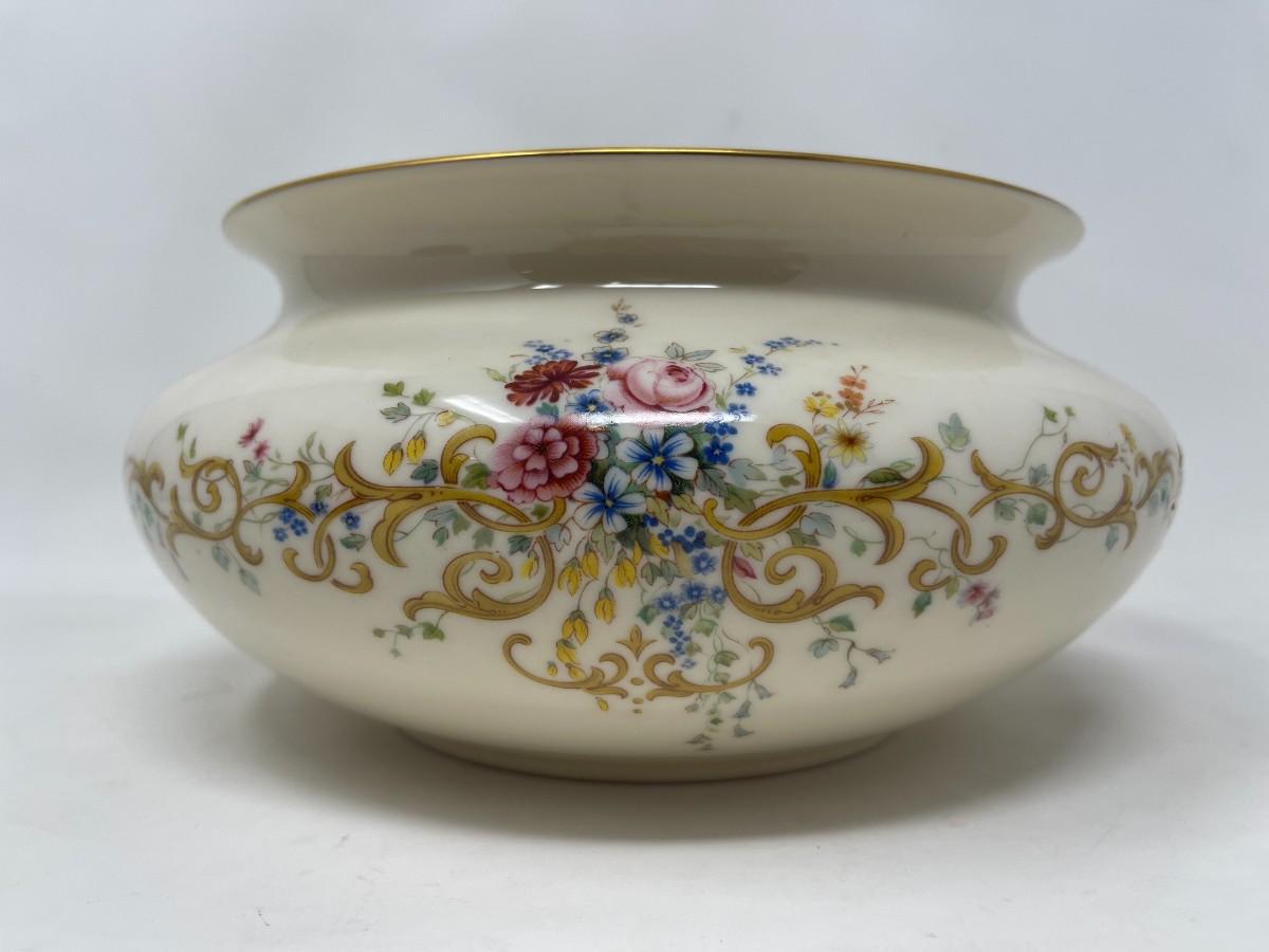 Lenox floral bowl with 24K gold accent work. Perfect to add to your "Queens Garden" collection or Lenox collection or act as a centerpiece. 9" W x 4.5" H # 424
