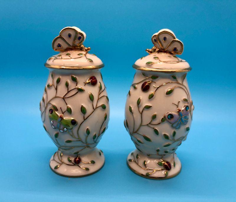 Lenox Salt & Pepper Shakers Holloway Collection Butterflies and Ladybugs!