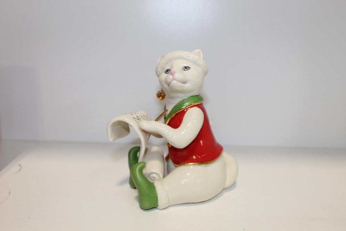 Lenox Santa's Kitty Elf Porcelain Figurine White Christmas Cat Blue Eyes