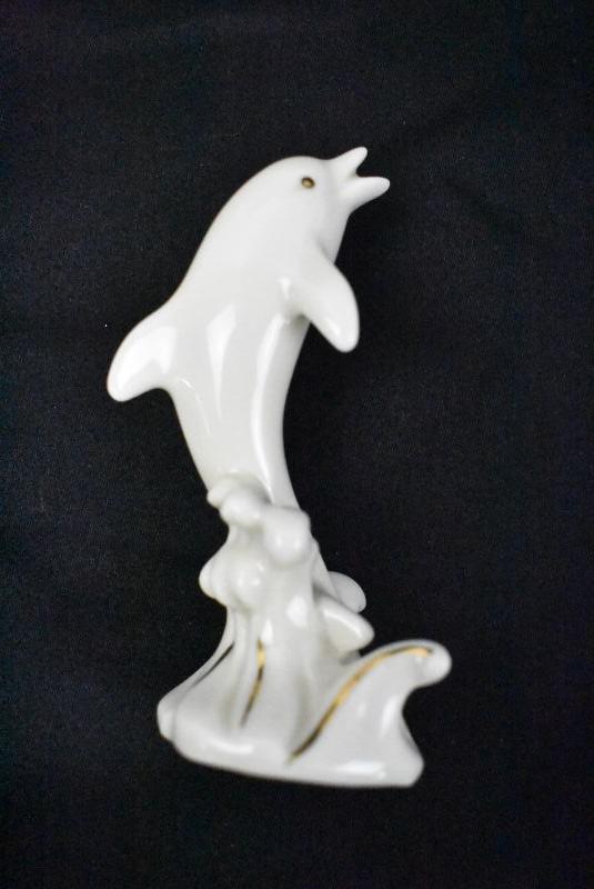 Lenox Small Dolphin Figurine, Ivory color with & Gold Trim - Vintage