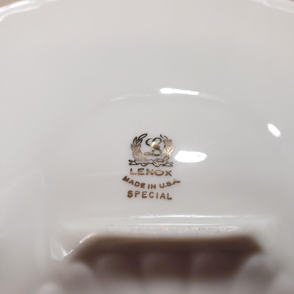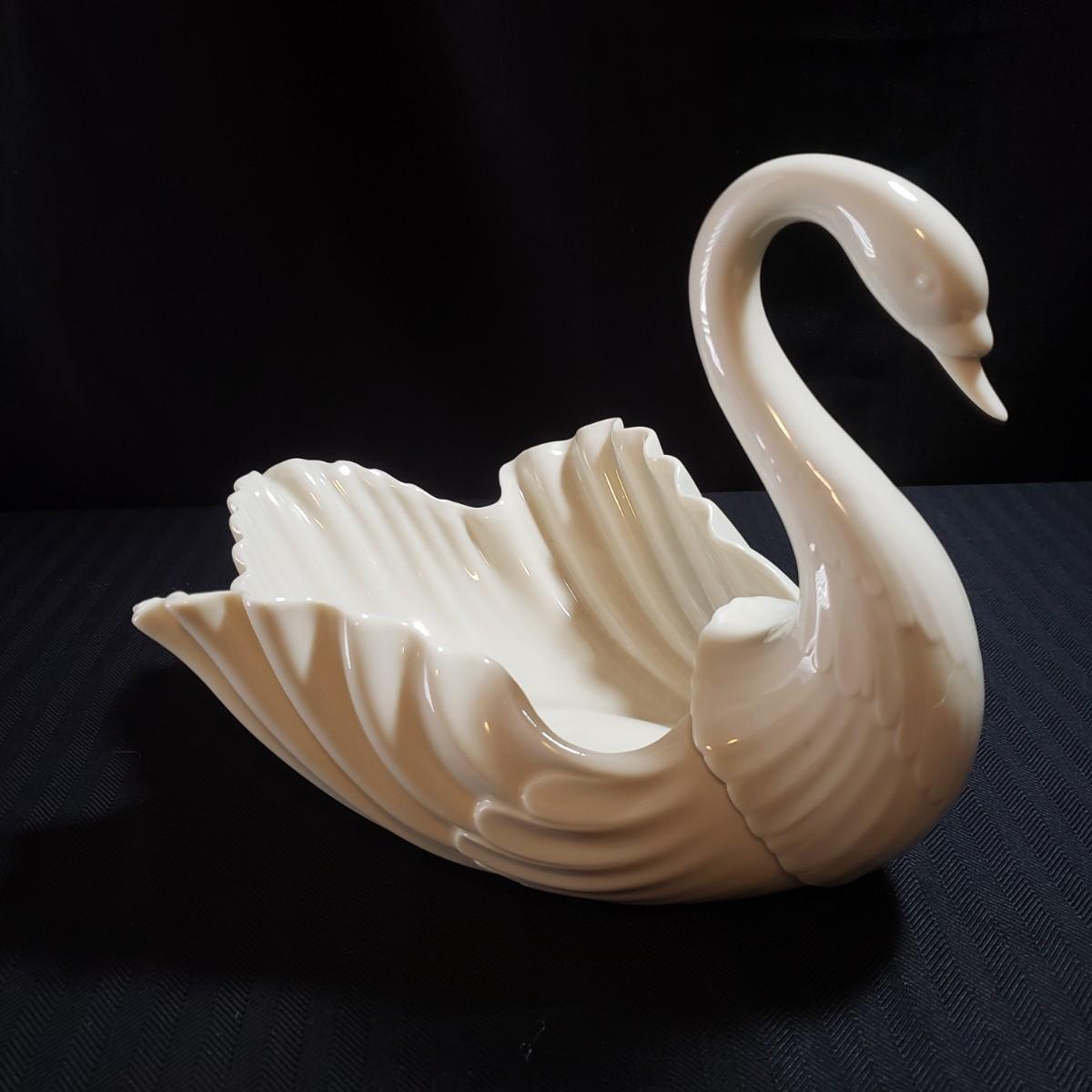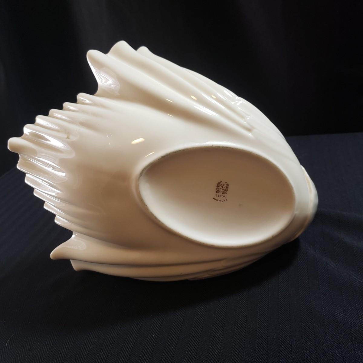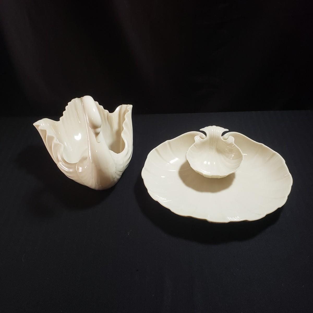 This two piece Lenox lot features a swan shaped bowl measuring 11" x 9" x 9"H. The chip and dip bowl is from the Aegean collection. The bowl is one solid piece, as the dip bowl is connected. Both pieces appear to be blemish free.
