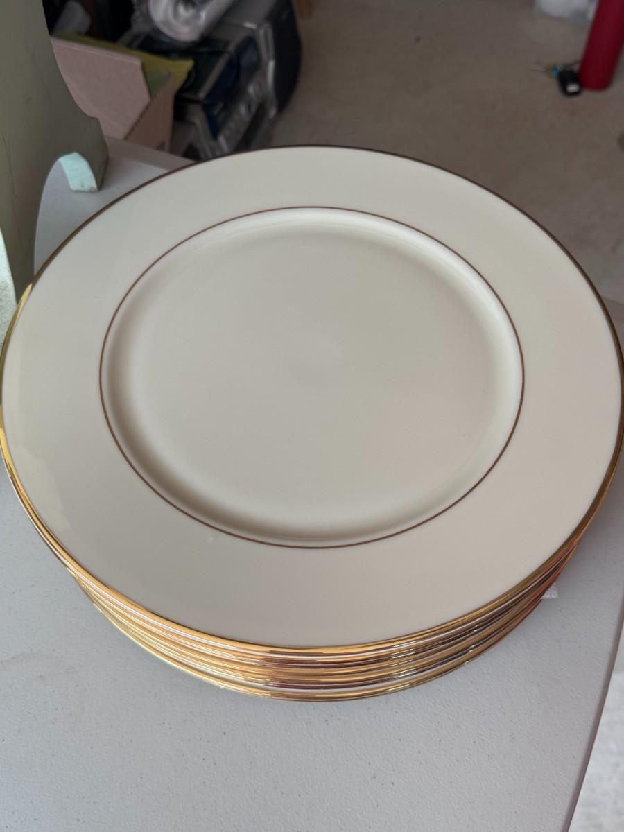 10 Lenox Charger Plates- 12" Please see all pictures as they are the best representation of the items. The pictures show condition and what is included in the lot. All items unless noted, are pre-owned and have been used. *If you purchase furniture, you MUST bring help. We do not allow one person to carry large furniture out on their own. Bring help, tools and a truck for the safety of our client's home, and our buyers, to include yourself. Any damages that result to the property including walls and floors due to moving of the furniture will be charged to the buyer.*