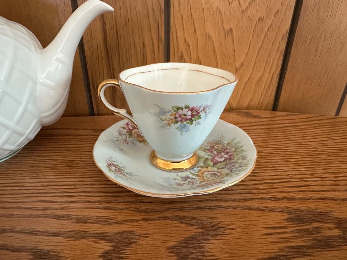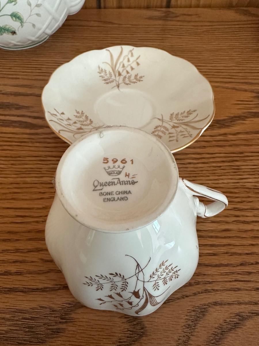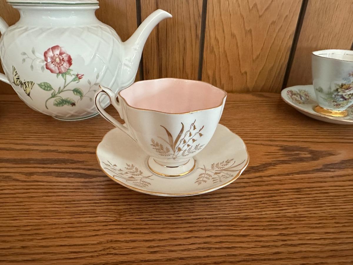 LENOX TEAPOT AND BONE CHINA TEA CUPS AND SAUCERS