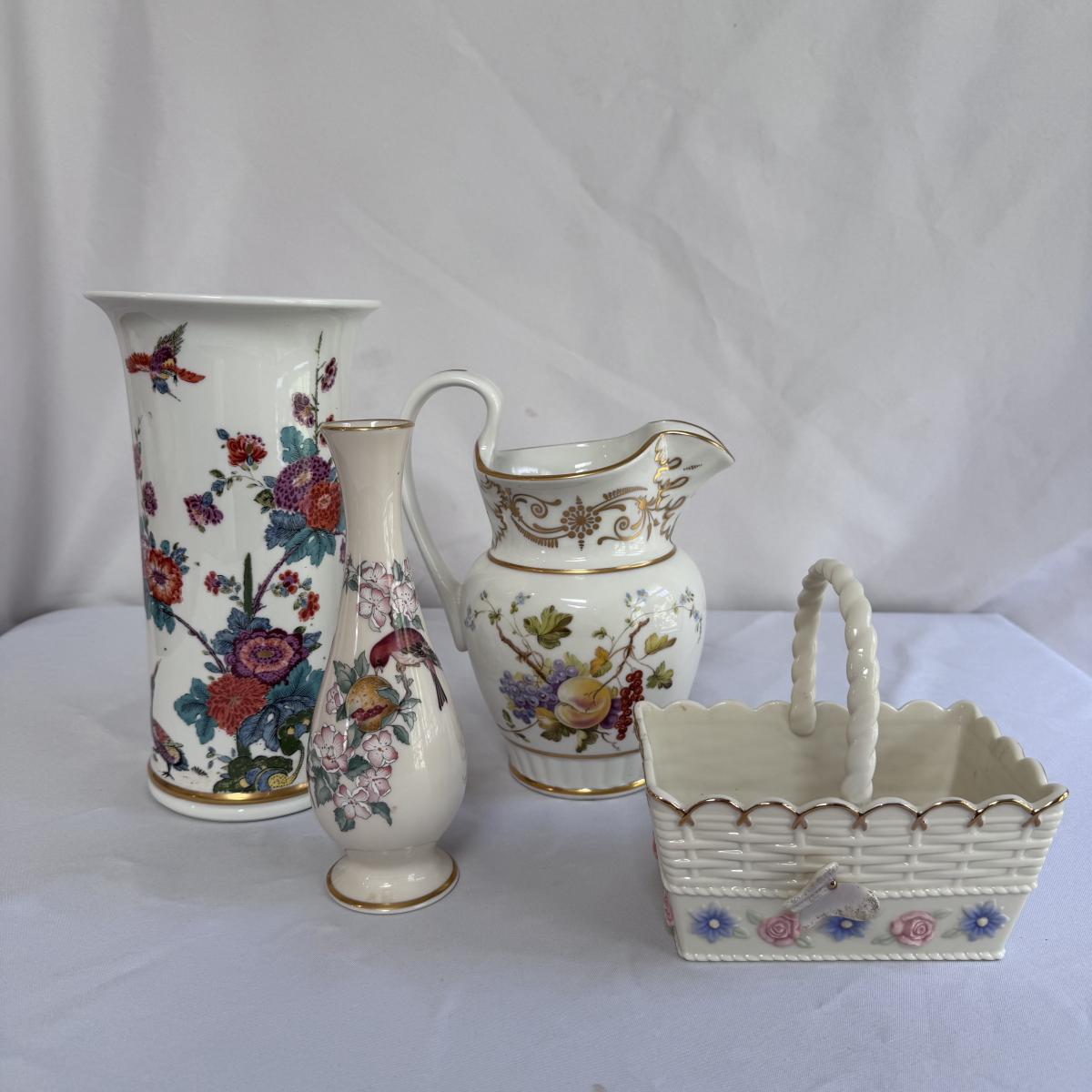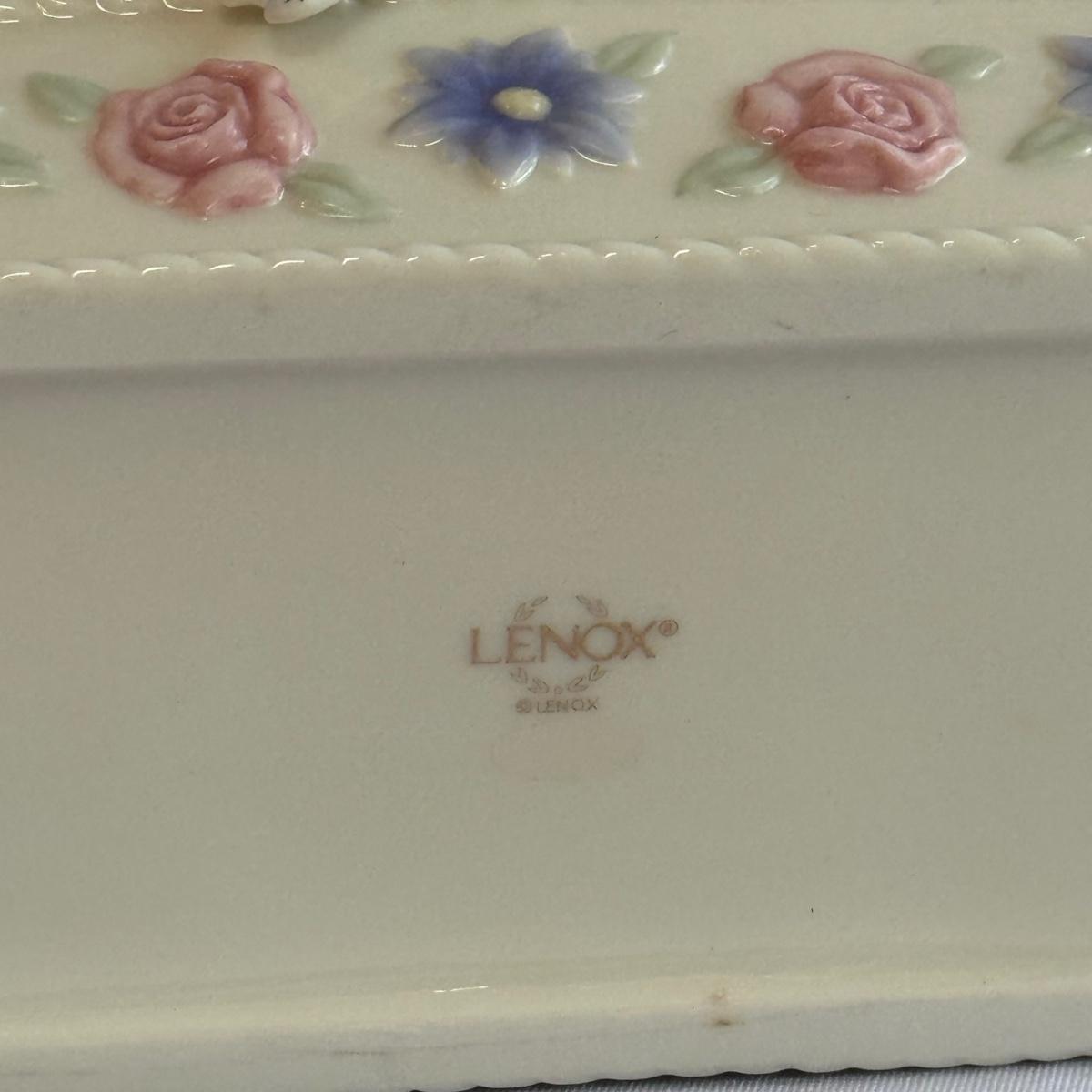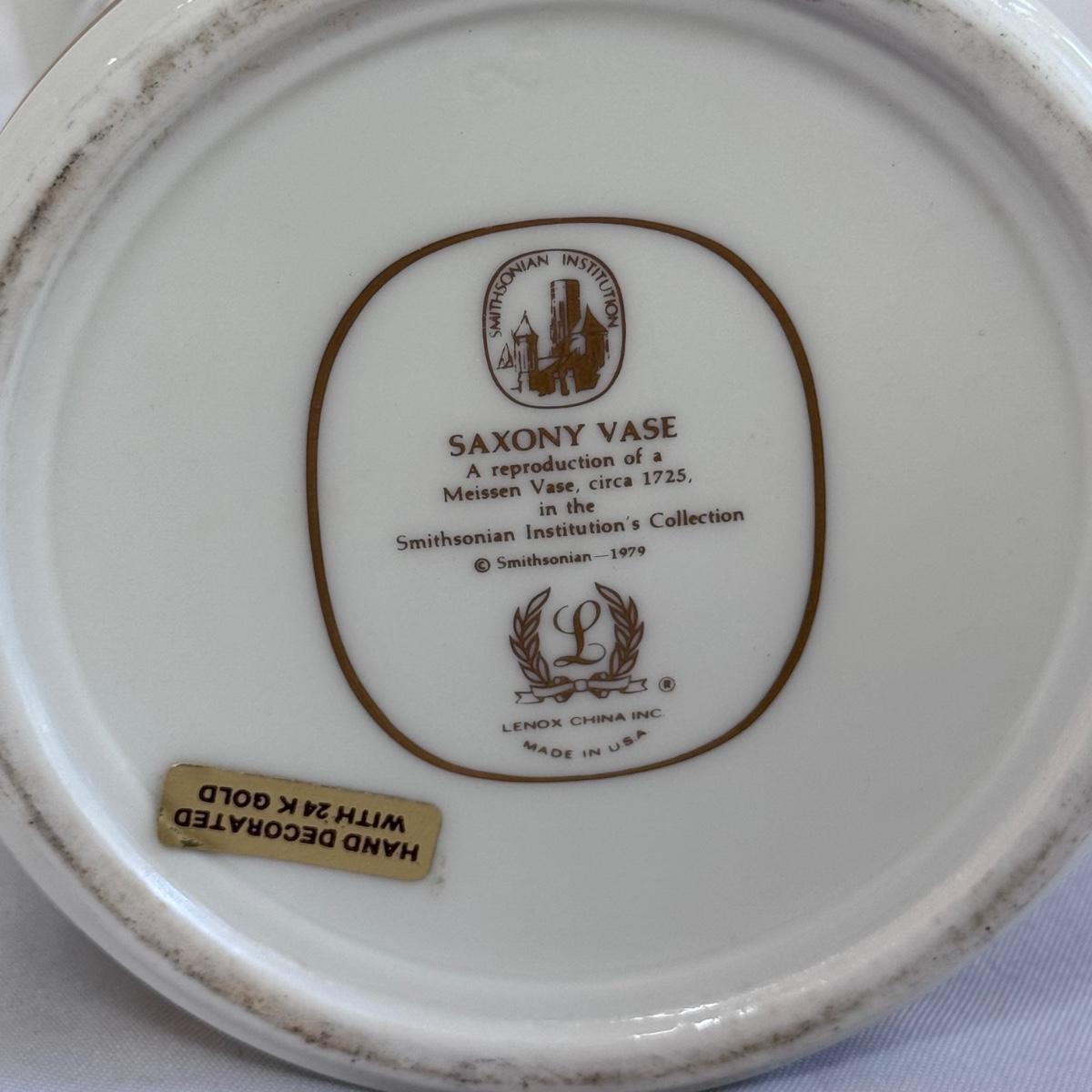 This lot includes one Lenox Tucker pitcher, one Lenox Smithsonian Saxony vase, one basket with a gold butterfly plus pink and blue flowers by Lenox, and one Lenox serenade bud vase. All items are stamped with Lenox on the bottom. All items, excluding the basket had a sticker on the bottom that reads “hand decorated with 24k gold.” The saxony vase is the largest item that measures 6” x 11”H. Shipping available. Shipping can be costly. We suggest contacting our preferred local shipping provider, Postage Express, with dimensions and getting an estimate before bidding: (828) 255-9250 or shipping@postageexpressnc.com.