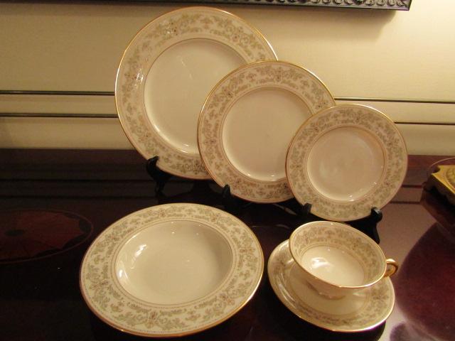 Lenox (USA) Noblesse Pattern China (Stands Not Included). Dinner Plate-8, Salad Plate- 8, Bread Plate- 8, Soup Bowl- 8, Cups & Saucers- 8.
