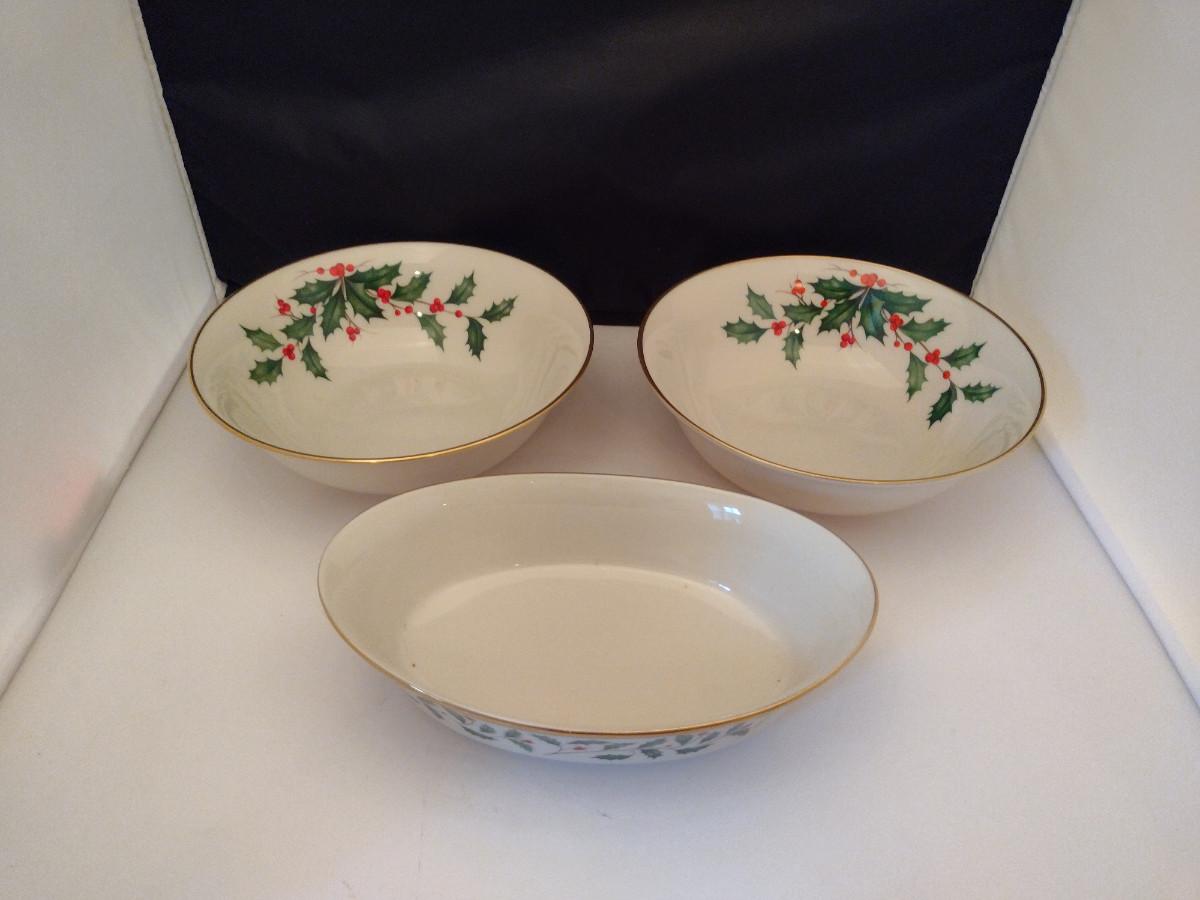 Lenox (USA) Serving Bowls- Holiday Pattern- 3 Pieces. 1 oval bowl (10"), 2 round bowls (9 3/8").