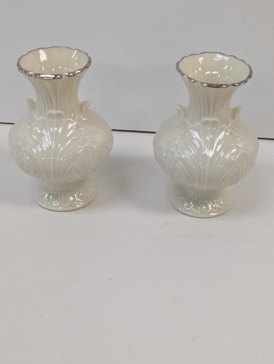 Lenox USA Special Leaf Bud Vase With Silver Edges