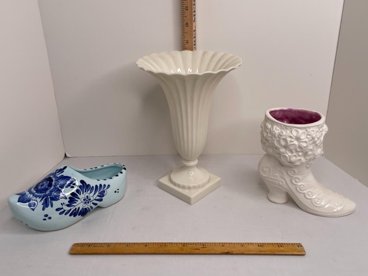 Lenox vase, ceramic boot, Dutch ceramic shoe