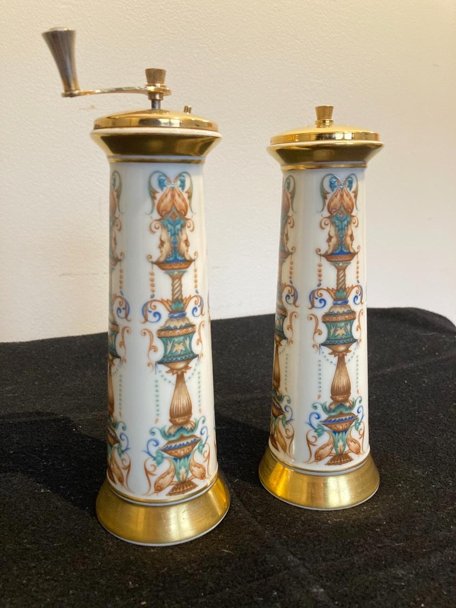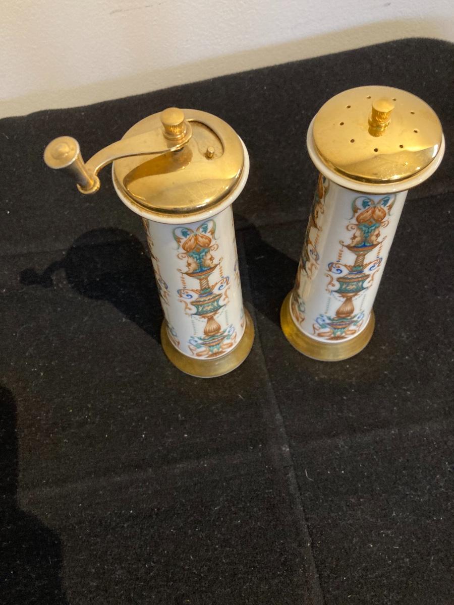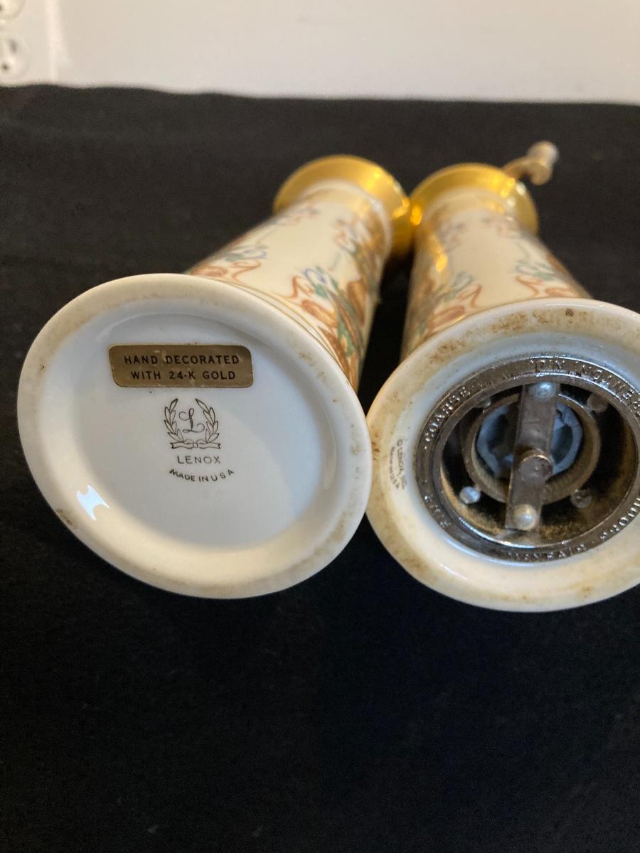 Lenox Vintage 7.5” Lido 24k Gold & Porcelain Salt Pepper Set