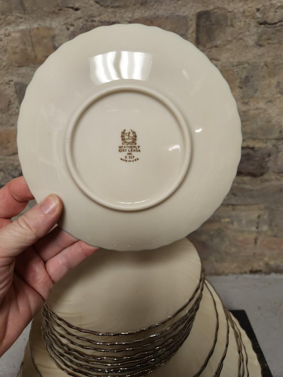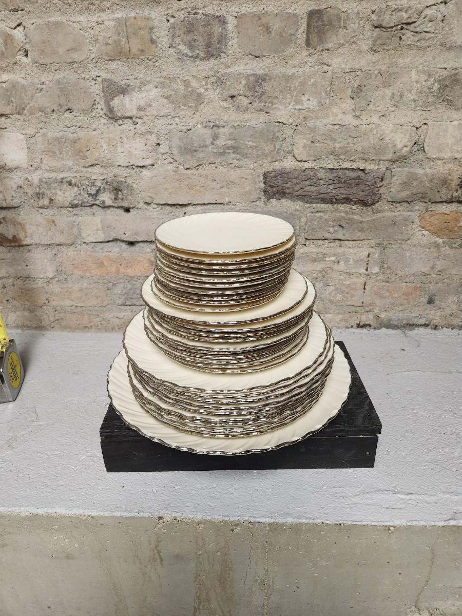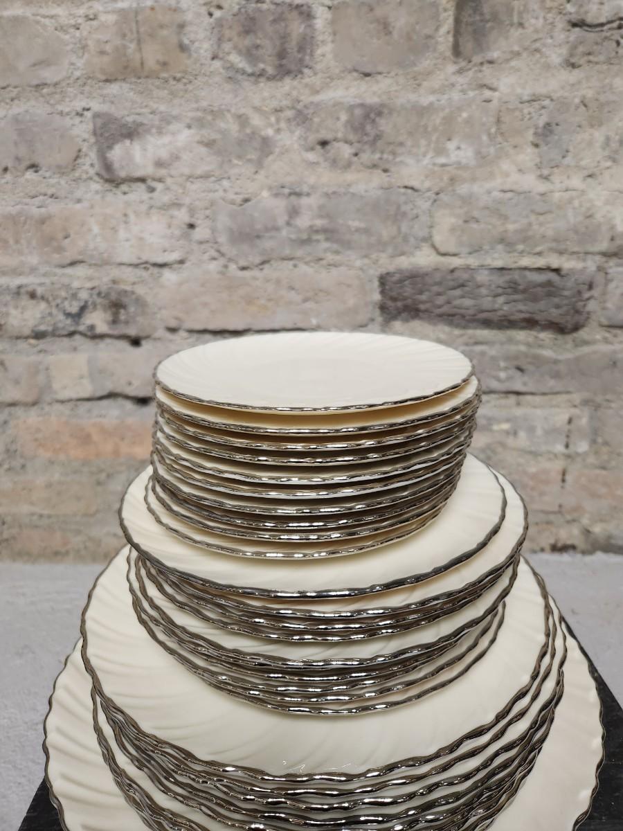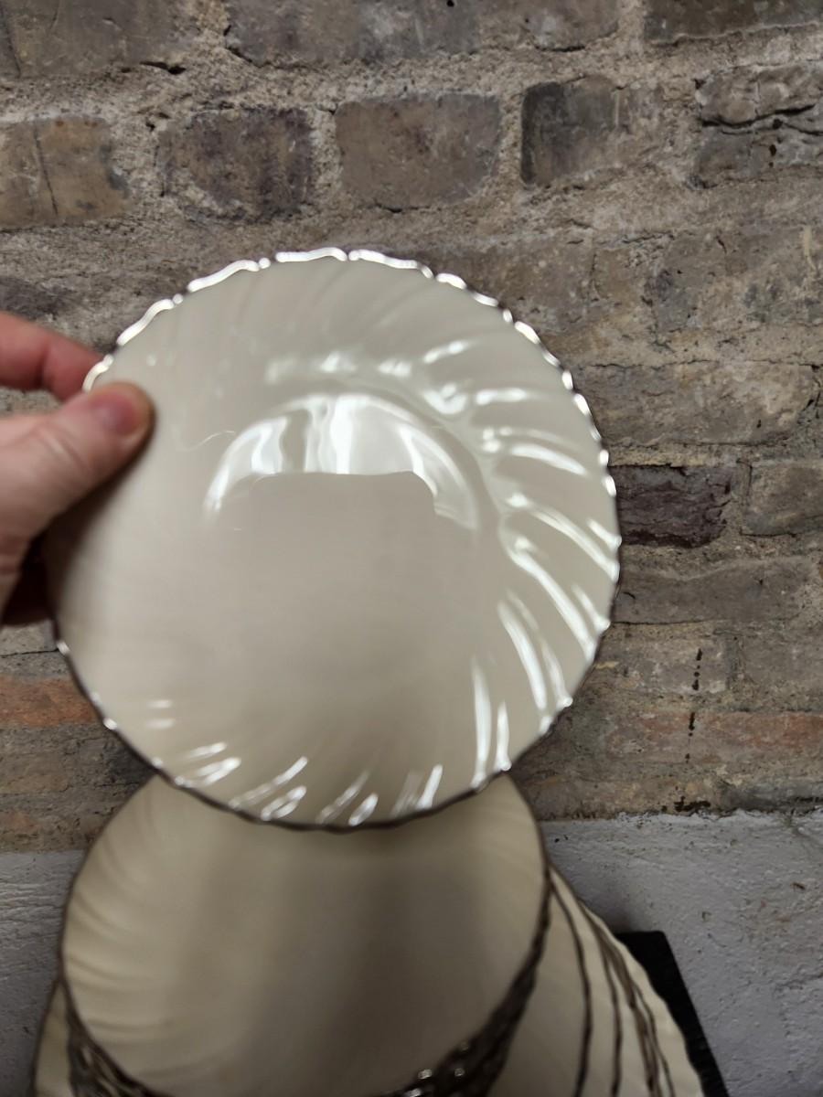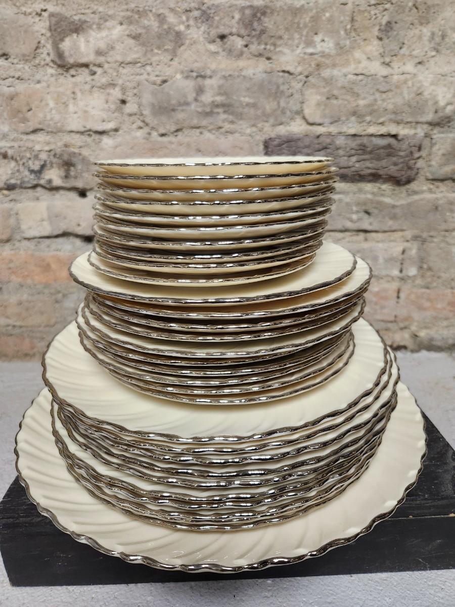 Platter, dinner plates, lunch plates and desserts. All in pristine condition. Not sure these were ever used.
