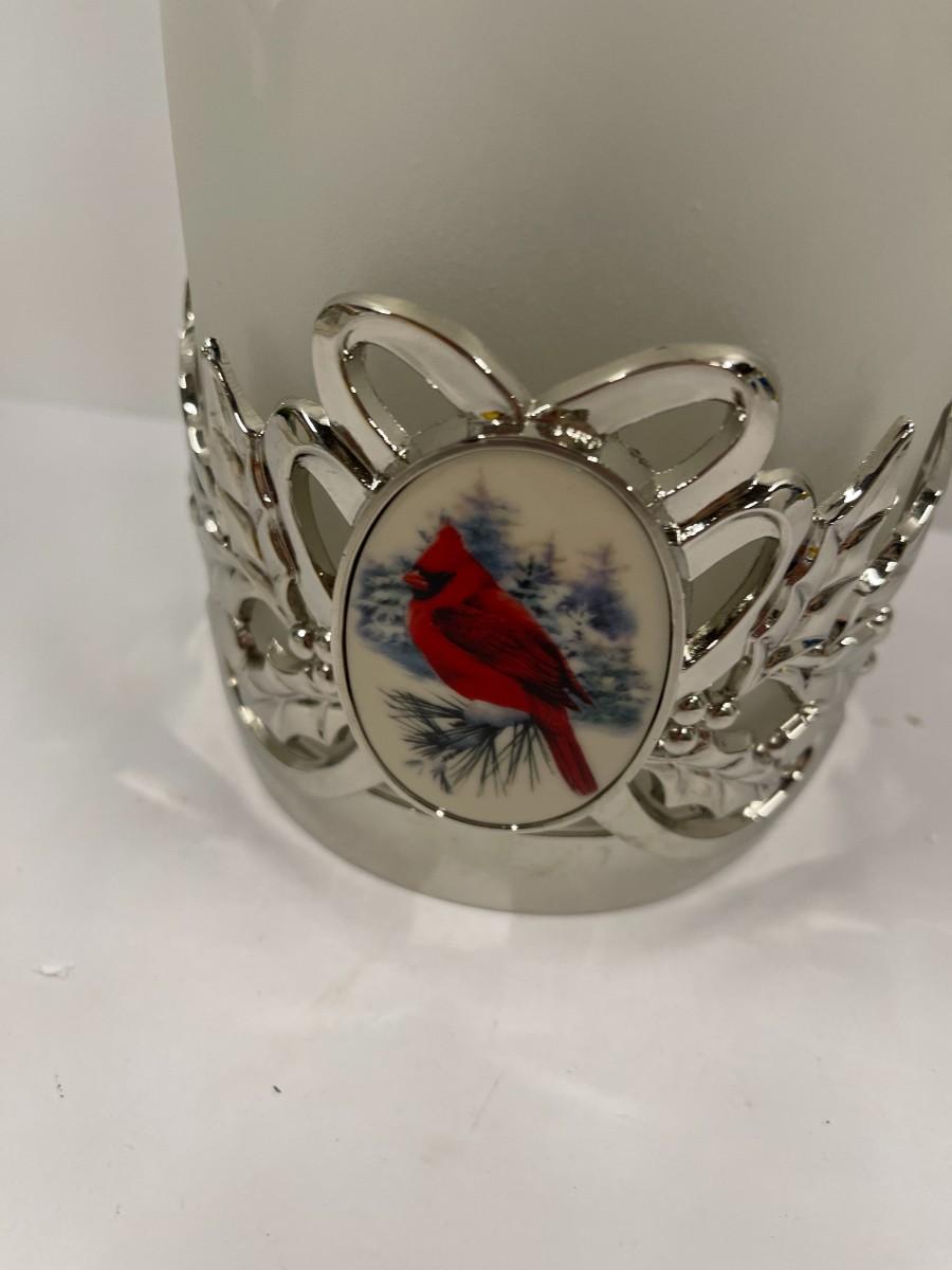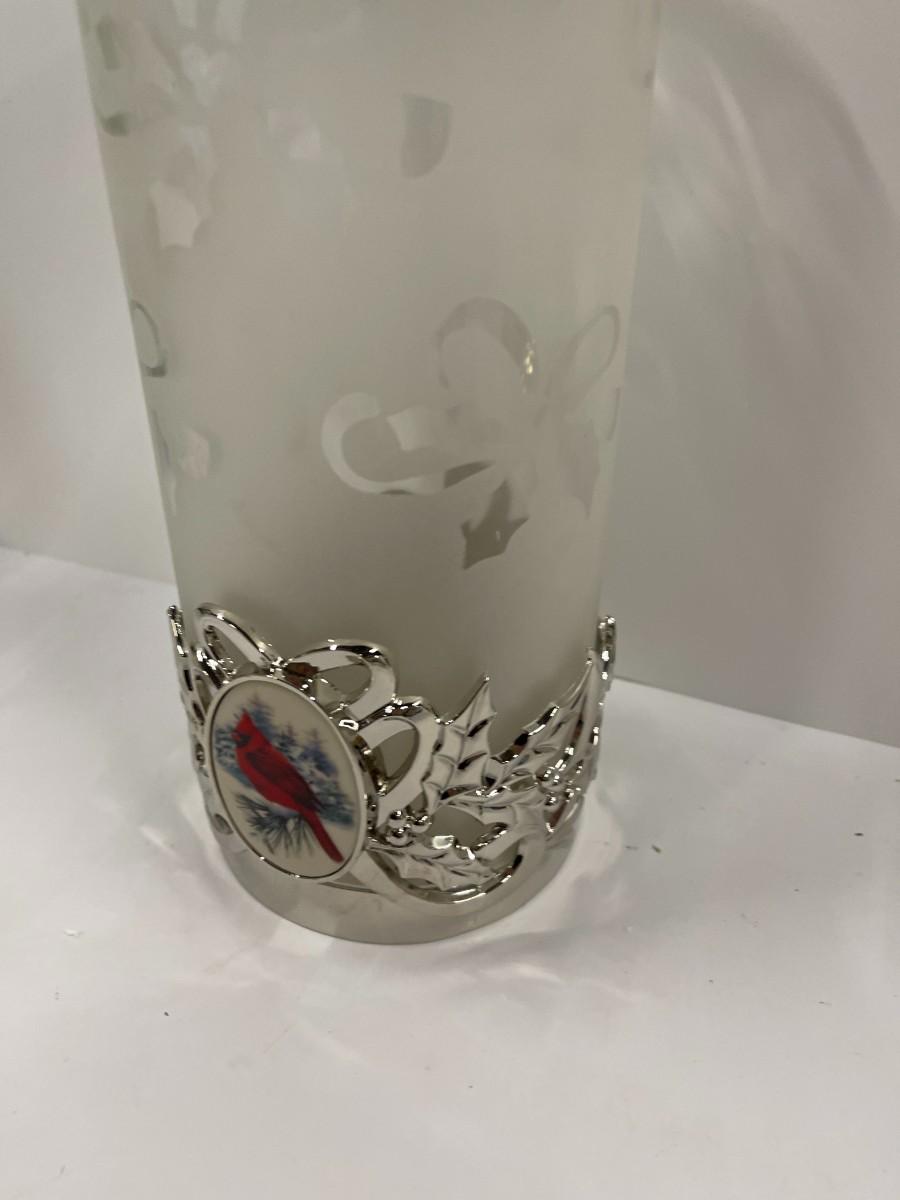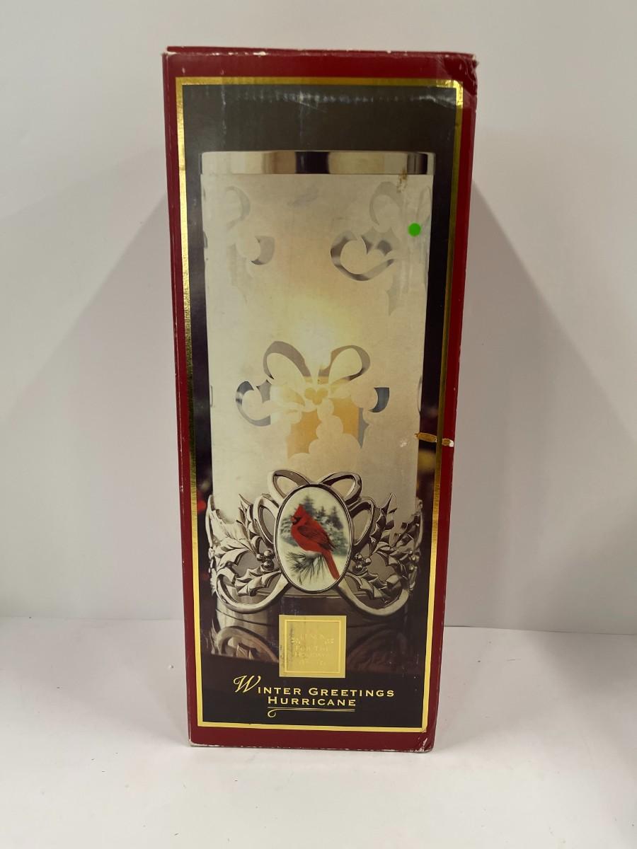 Lenox Winter Greetings Hurricane lantern with cardinal. Comes in original box, in like new condition. Does not include candle. # 1336