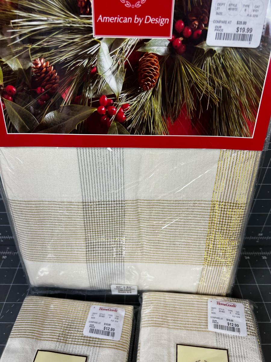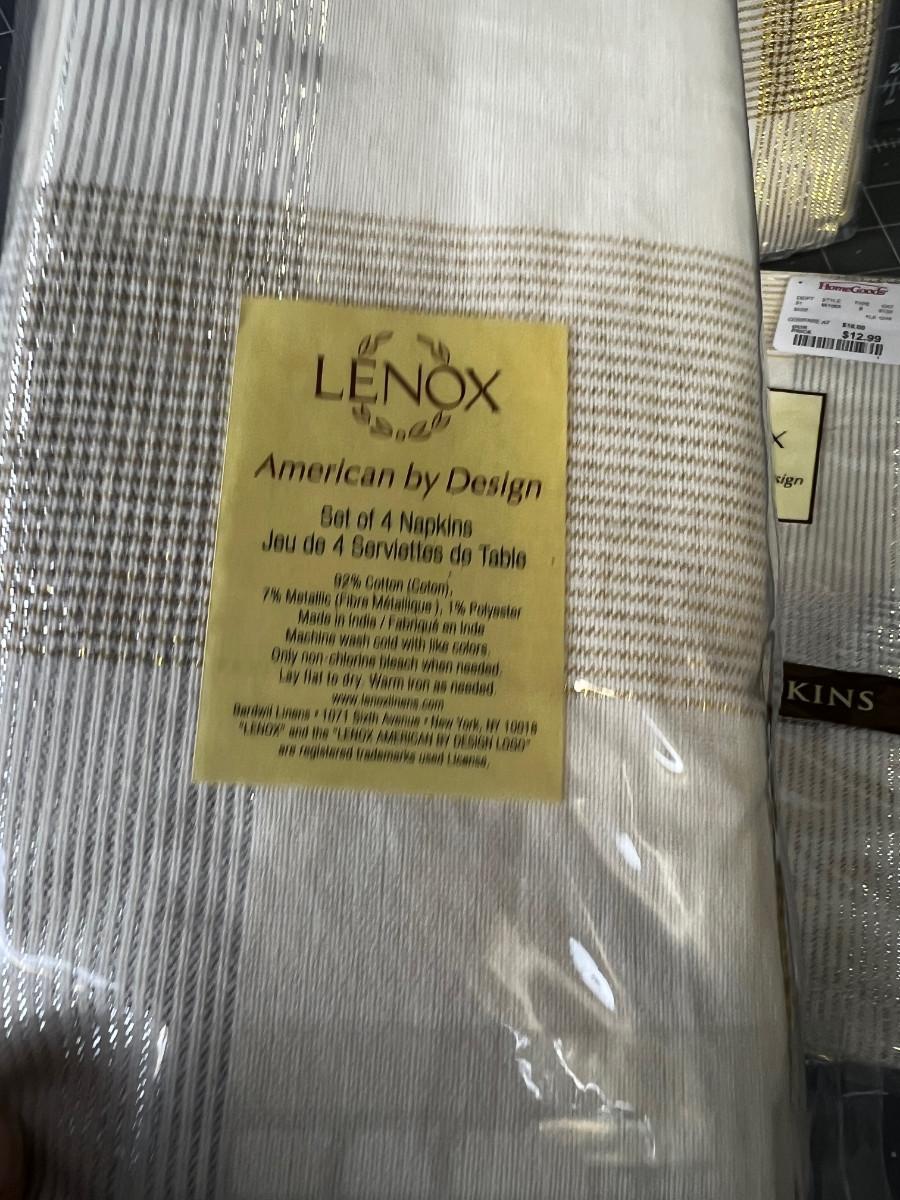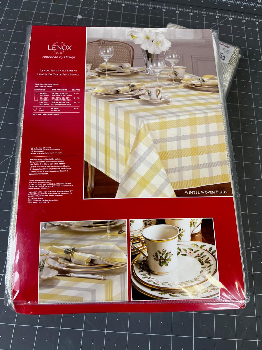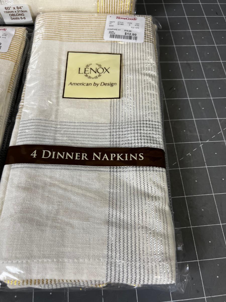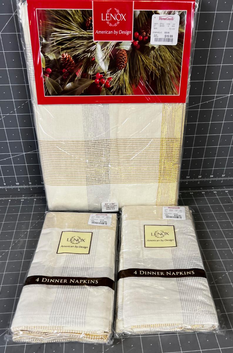 LENOX Winter Woven Plaid Cream Silver & Gold 8 Napkins & Table