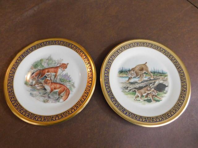 Lenox Woodland Wildlife Collector Plate 2 Piece Set Red Foxes 1974 and Bobcats 1980 by Boehm