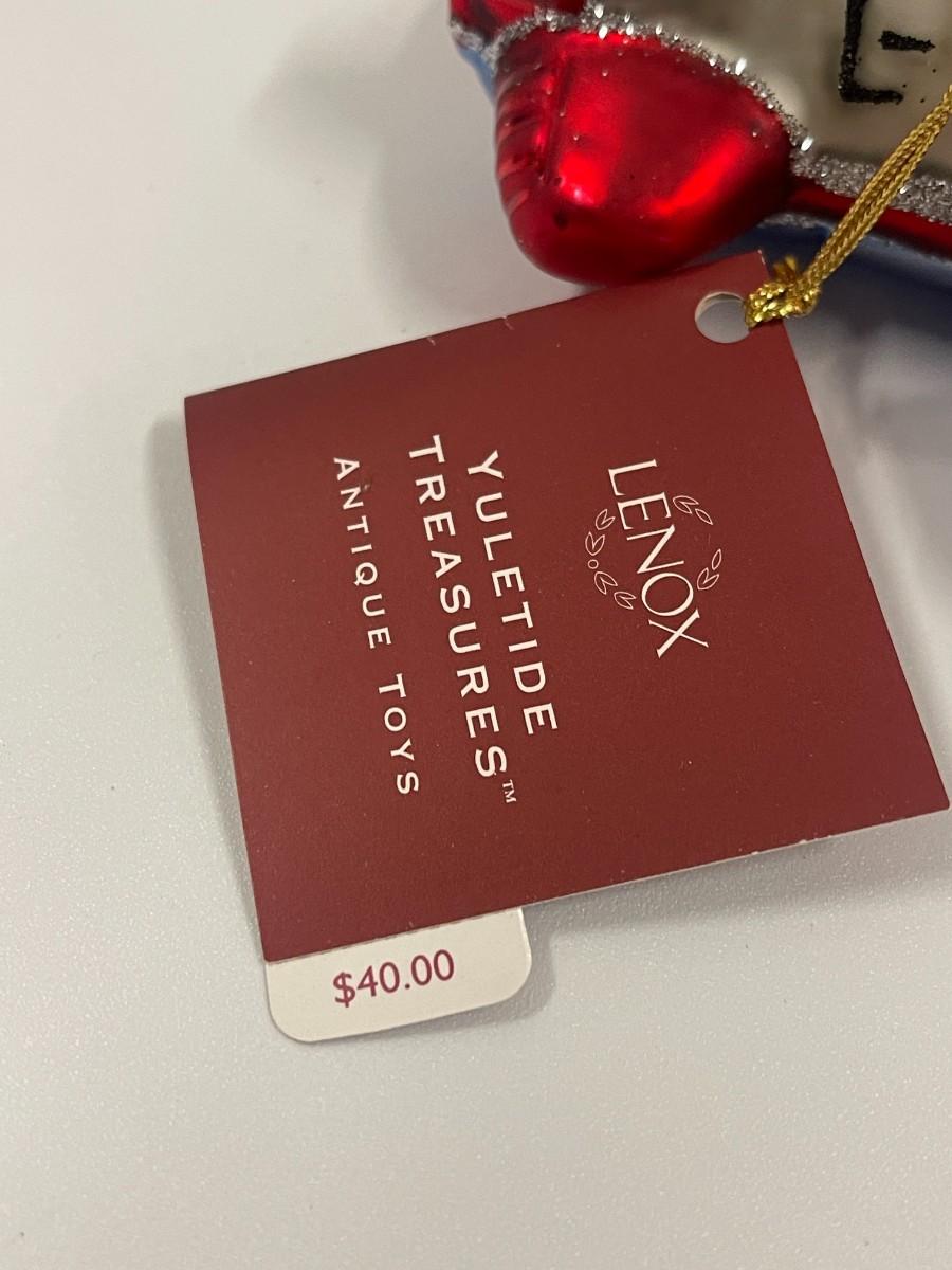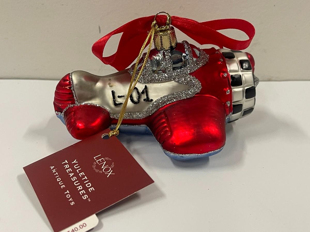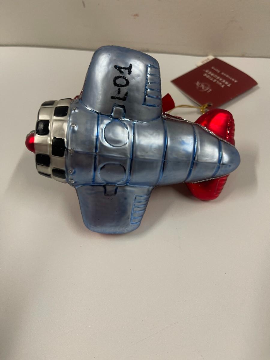 Lenox Yuletide Treasures Antique Toys Plane Glass Ornament, NWT