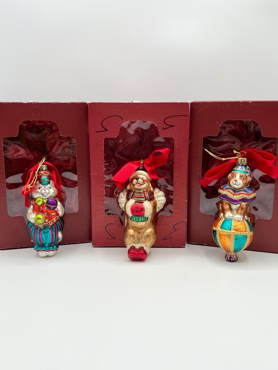 Includes: (2) Circus Show ornaments = “Kitten” & “Puppy dog” ~ (1) Flying Animals ornament = “Puppy” ~ approx 5" to 6"