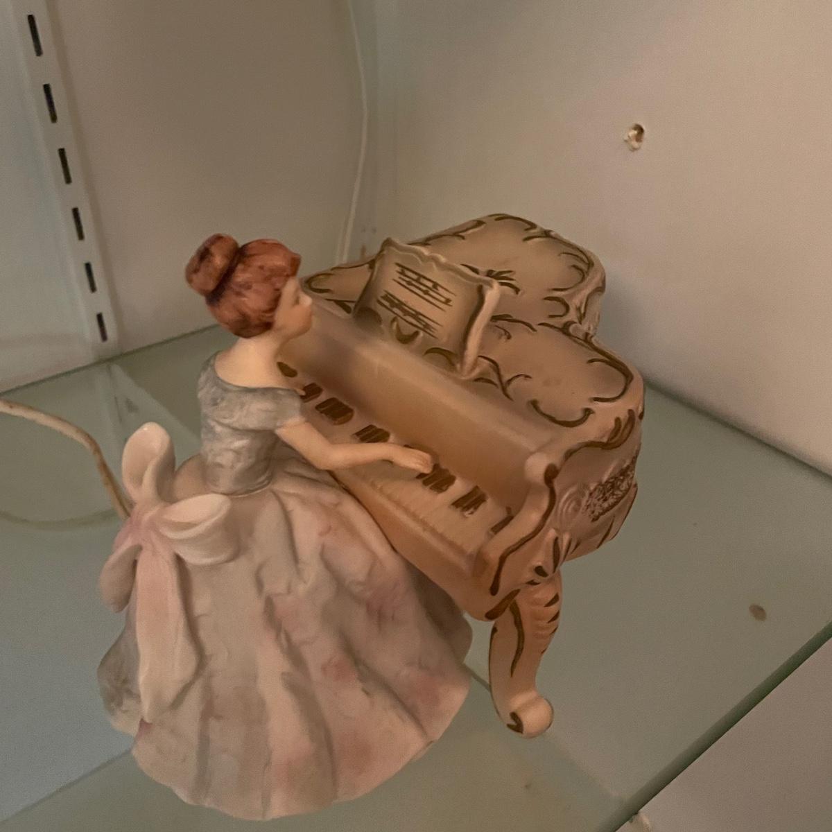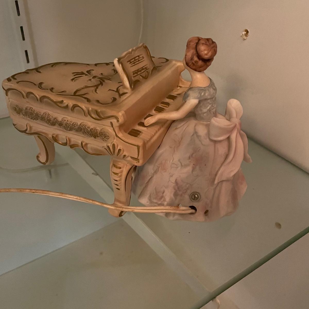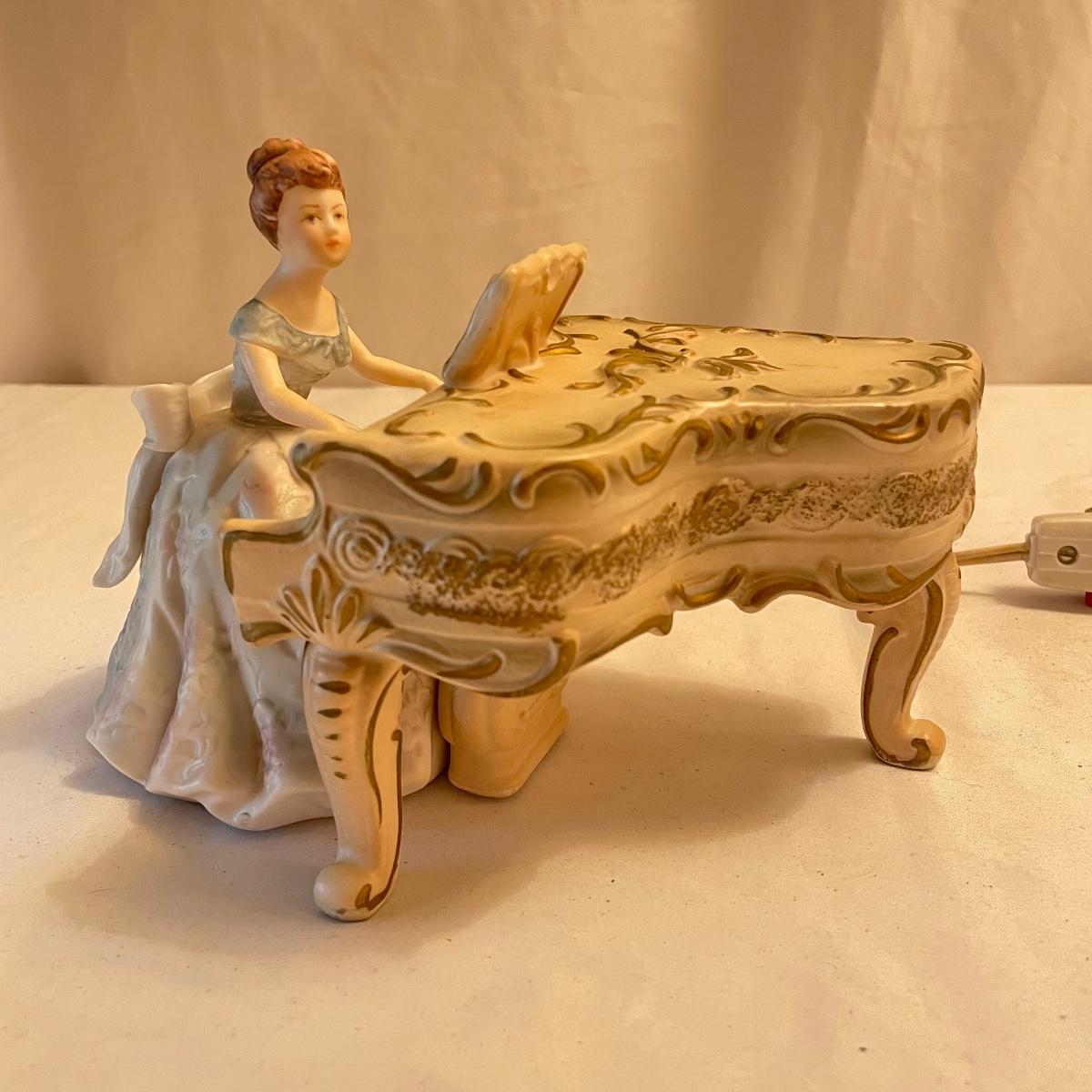 This fine China Lenwile Ardalt piece is a working lamp. The figurine sits playing the piano and Measures 8” x 6” x 6”.