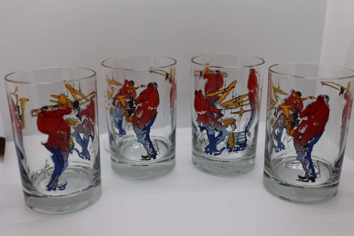 Set of 4 marked 1982 LJungberg Collection. Leo Meiersdorff Jazz Fest glasses, first of a series.