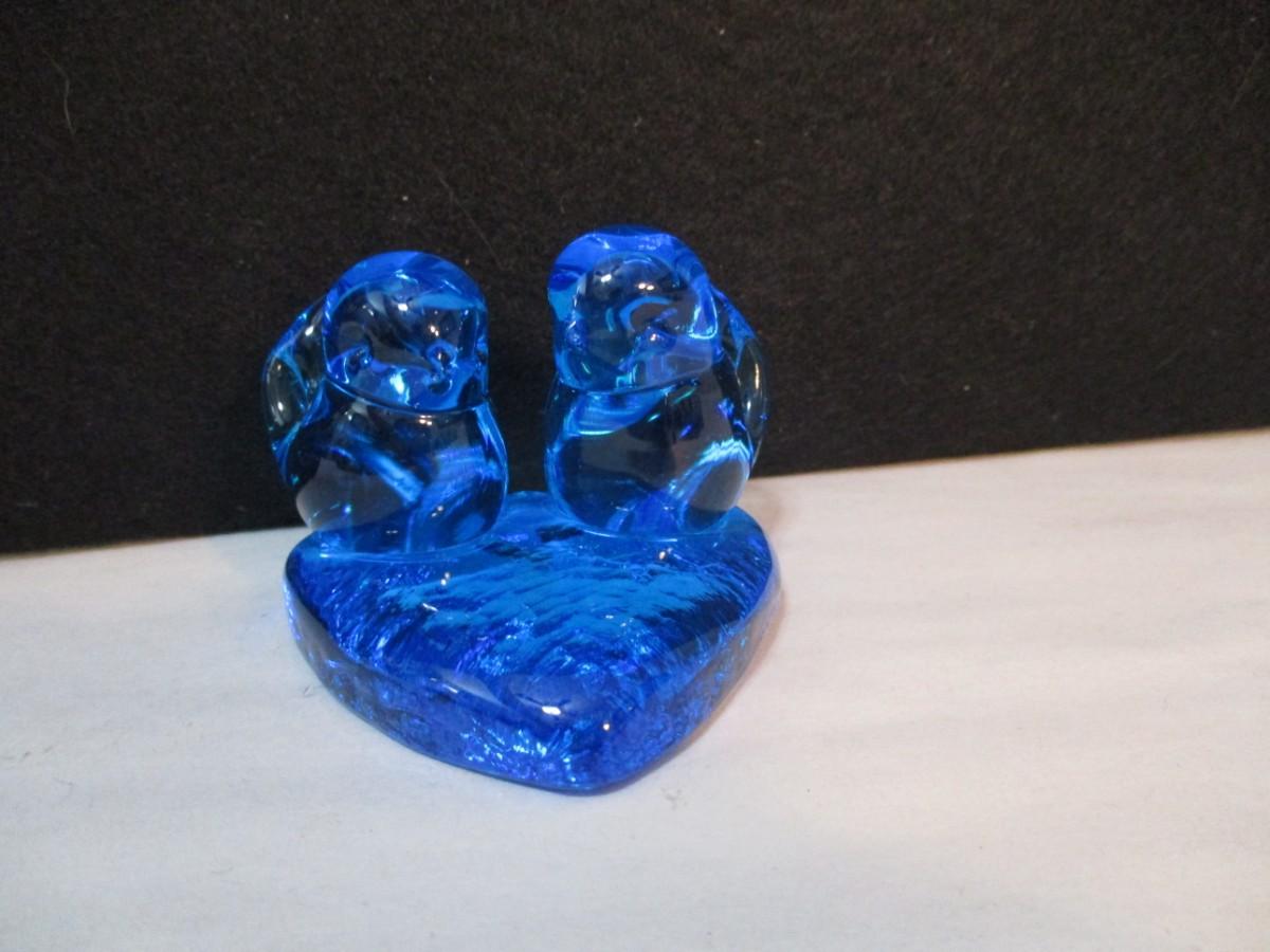 Leo Ward Blue Birds Glass Paperweight
