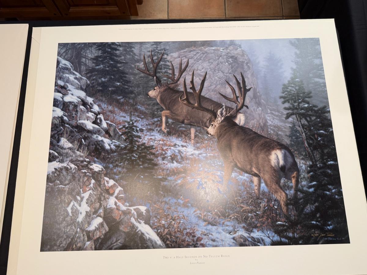 #92/950 signed Leon Parson Deer themed unframed lithograph