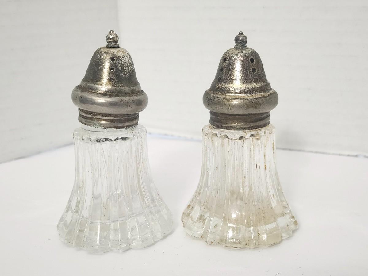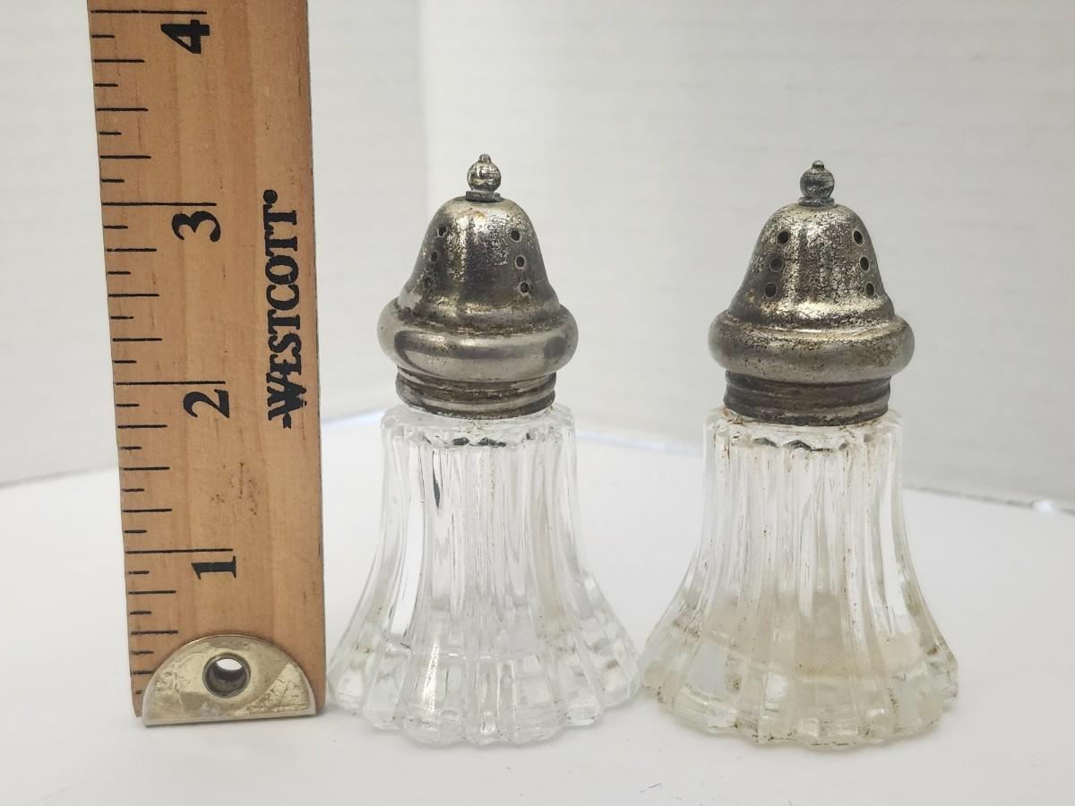 Leonard Japan Ribbed Glass Salt Pepper Shakers Silver Tone Lids Matching Table Set