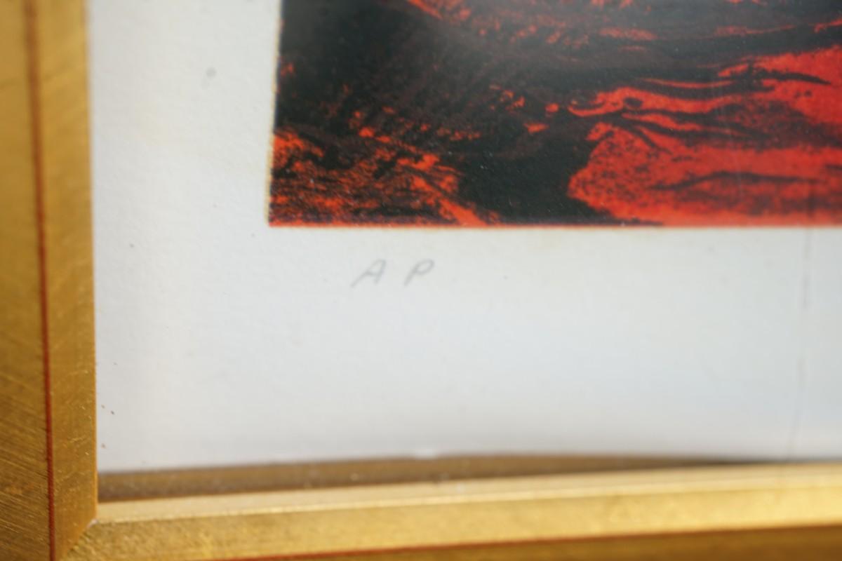 the piece is pencil signed lower right and AP for artist proof in the lower left.