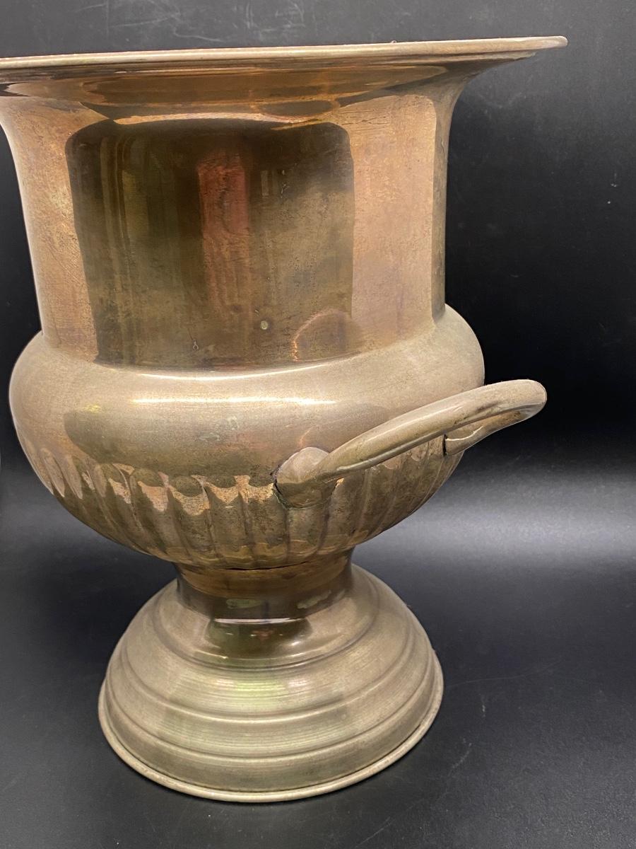 Leonard silver plate champagne bucket. Double handle. In good shape. A previous owner wrote their name on bottom, cannot be seen unless you turn the bucket over. About 10" size.