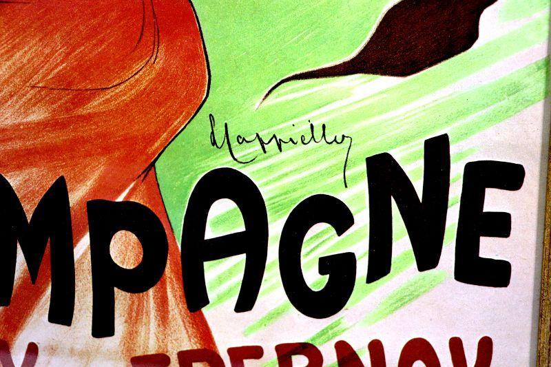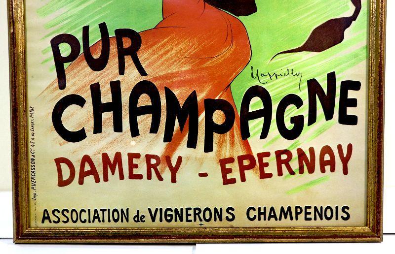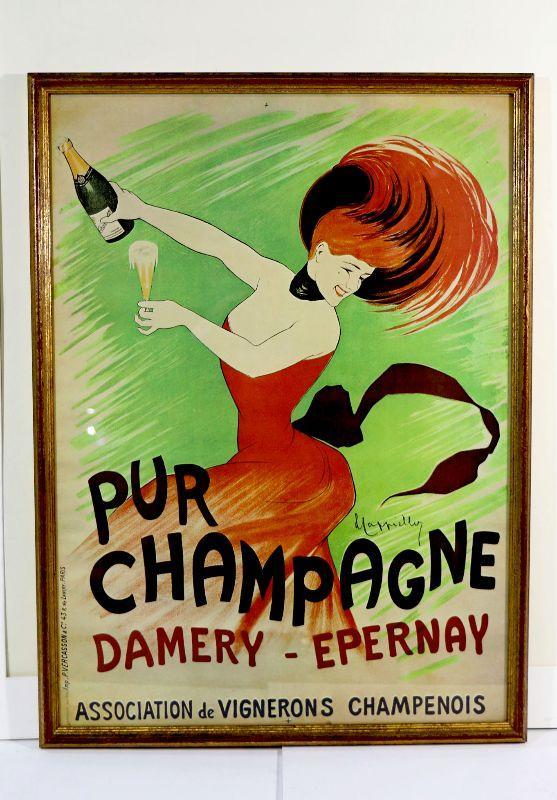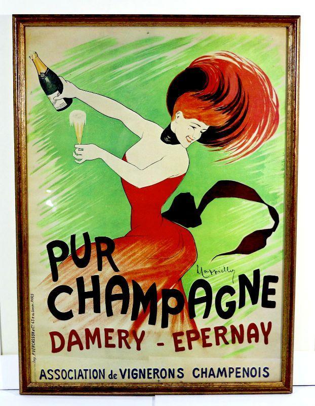 Vintage Victorian French Poster by Leonetto Cappiello - Pur Champagne/Damery-Epernay, poster printed in France and dated 1978, professionally framed with glass front, approximate dimensions: 19.5" x 27" - excellent condition on this vintage beauty, as seen on pictures.