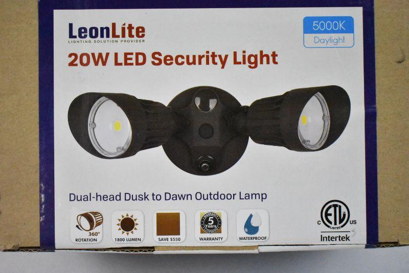 LEONLITE 20W Dual-Head Dusk To Dawn LED Outdoor Security Light, Photocell, Lamp - New