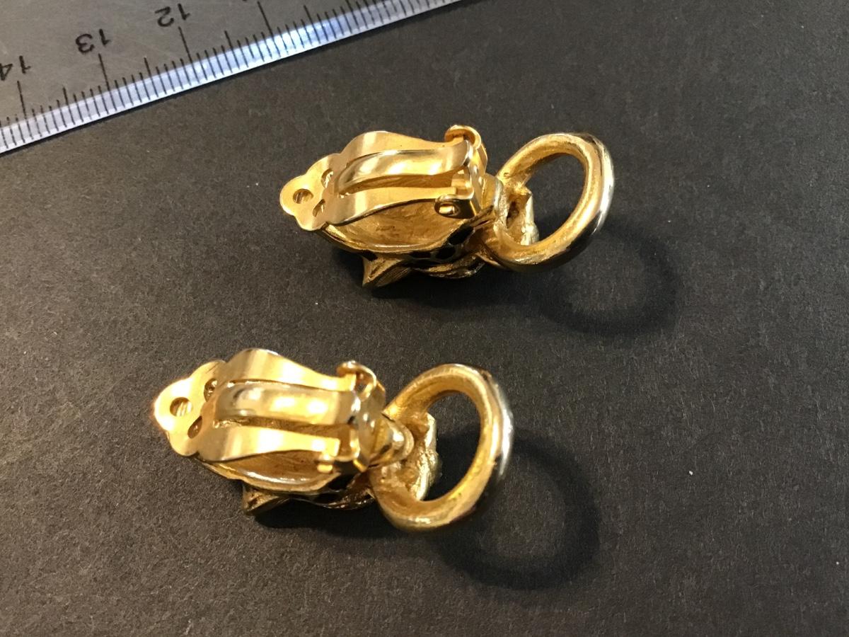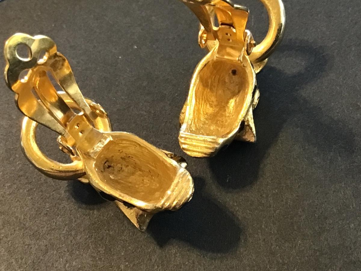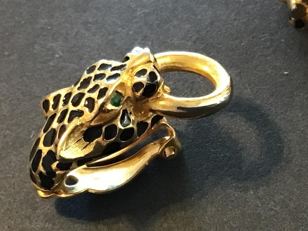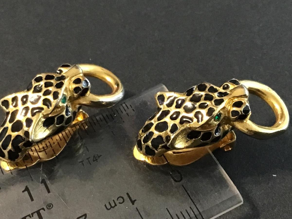 Leopard Clip on Earrings. Green Rhinestone Eyes