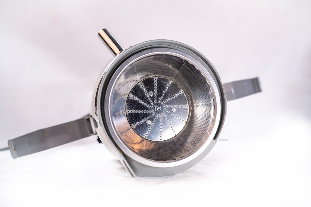 This is a compact centrifugal juicer with a heavy-duty 2/3 horsepower universal motor. The juicer features a patented pulp ejection system for continuous juicing.