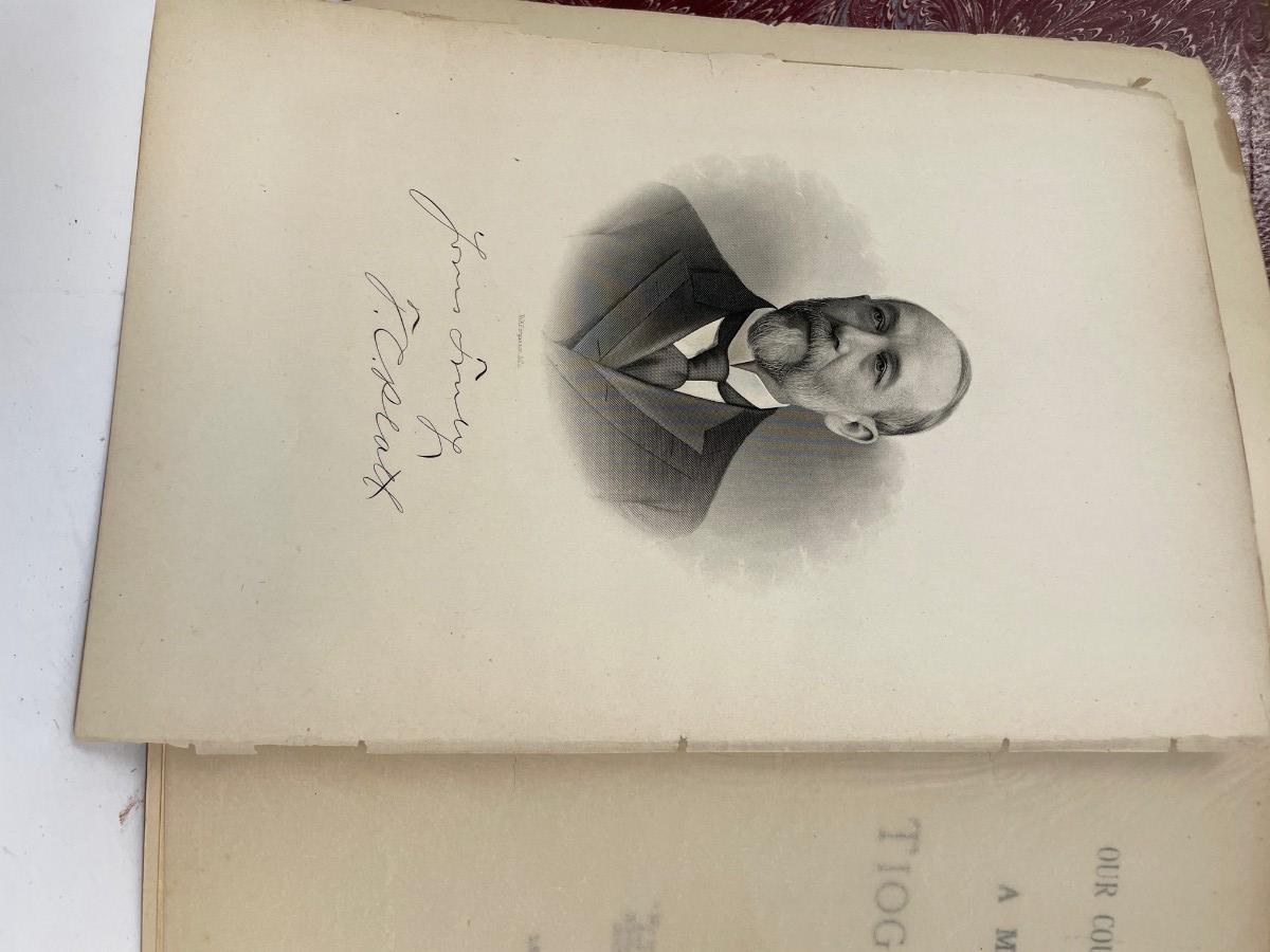 Description: Leroy W. Kingman Our County & its People Tioga County NY Elmira: W.A. FergussonMeasurement approximately: 11.5 ” H.Material: Paper.Condition: Fair., Text & binding dettached binding., Book missing spine n cover.Note: Signed rontispiece illustrated by J.C. Platt., Book from came from a Platt family member., 802 PP., Illustrated.,