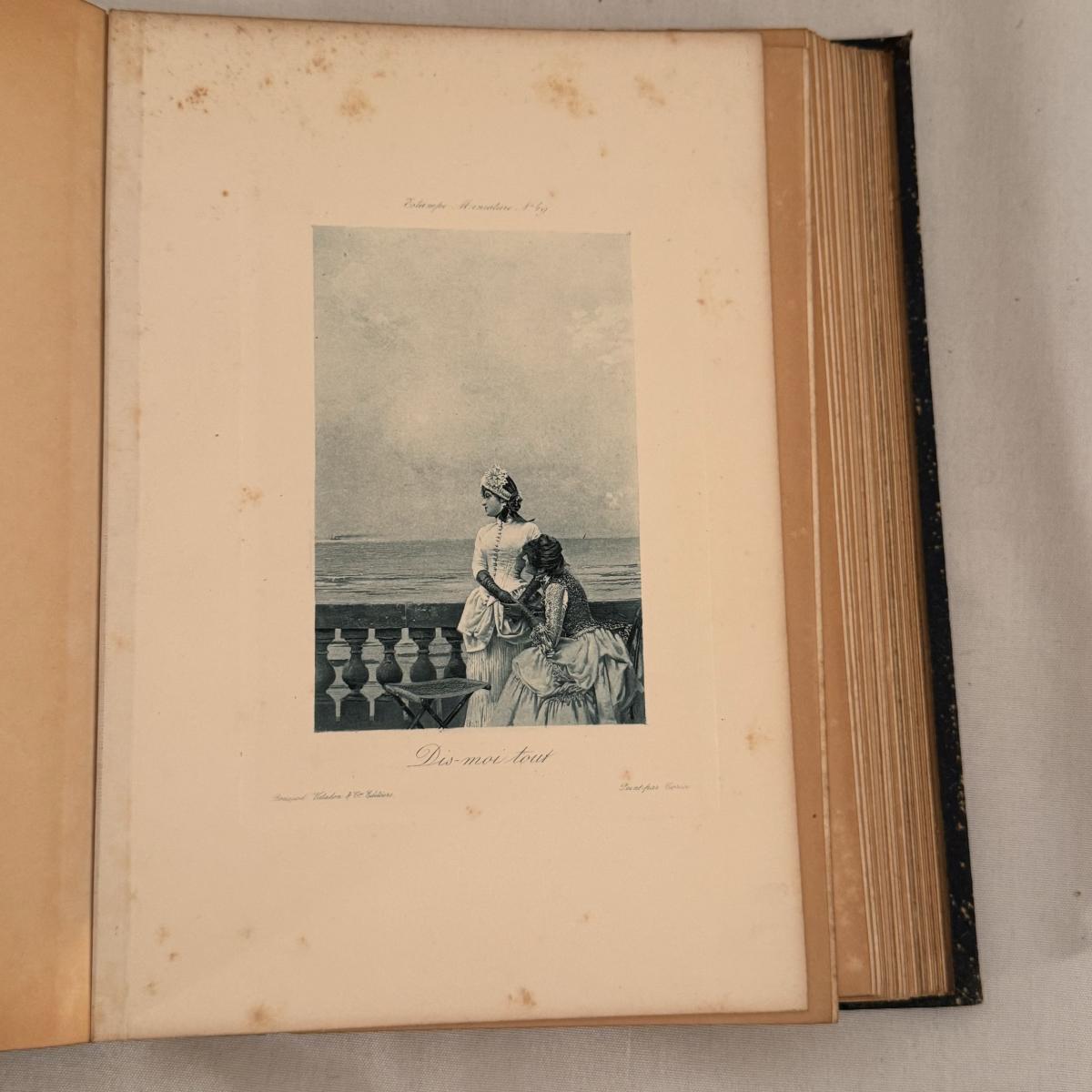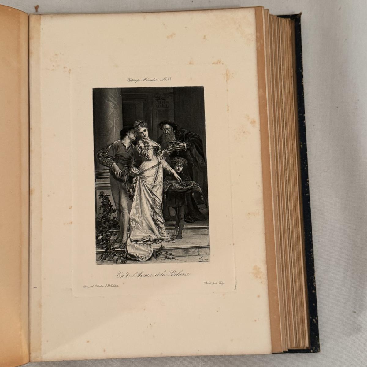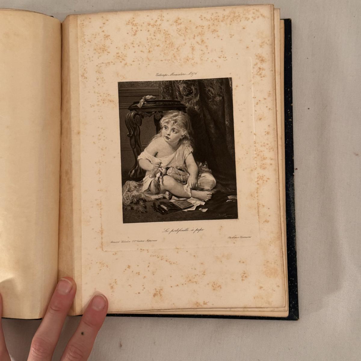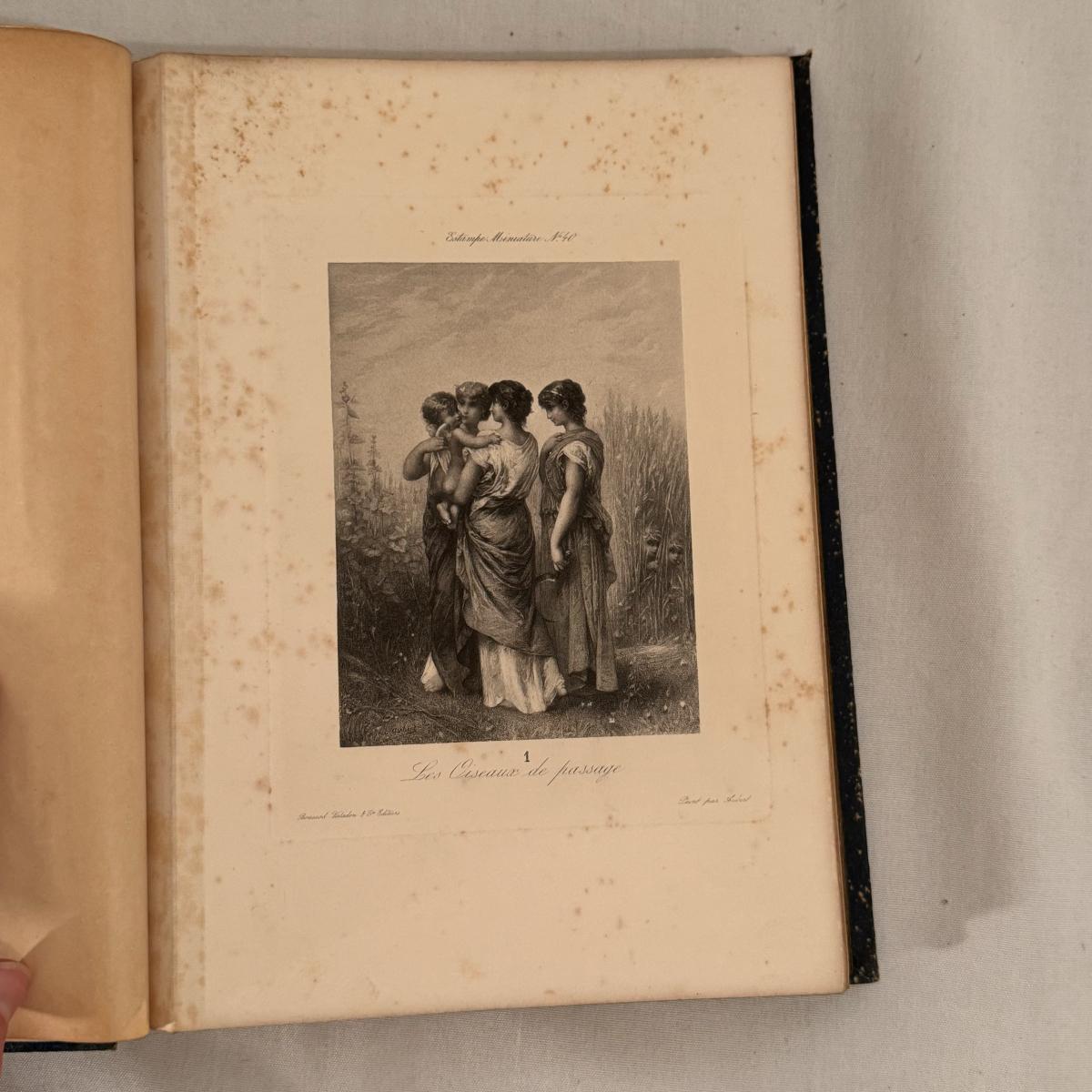 This lot includes the following two books: Les Estampes Miniatures Album No. 3 and Les Estampes Miniatures Album No. 8. Both appear to be from Paris. Both books individually measure 8” x 1” x 10”H. The books show signs of wear including spots of mold - see pictures of the pages included.