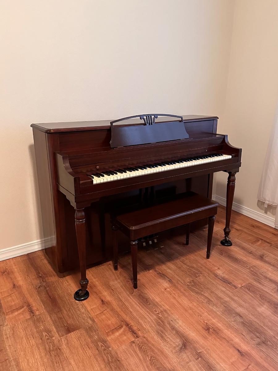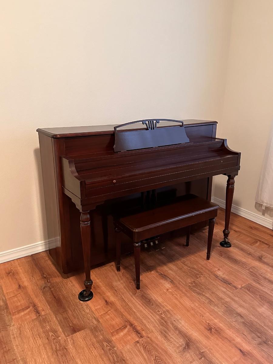 Sold as is ~ all keys work ~ will need tuning I’m sure ~ come with plenty help and proper equipment ~ 42” H x 69” W x 25” D ~ includes Bench