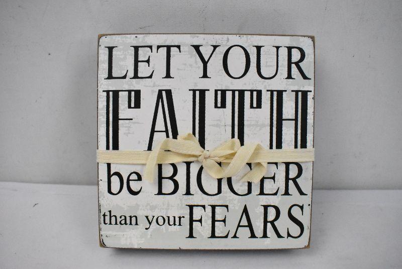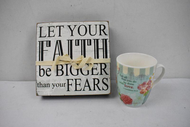 Let Your Faith be Bigger Than Your Fears 7" x 7" Wall Decor and "Let All That You Do Be Done with Love" Mug - New