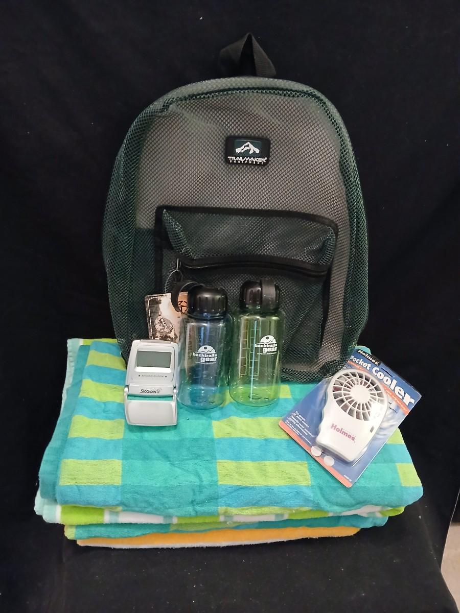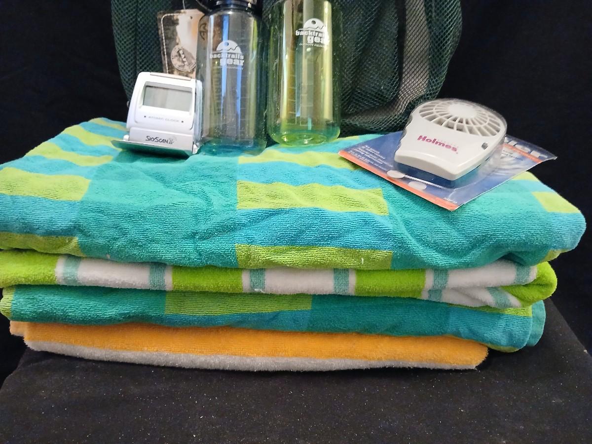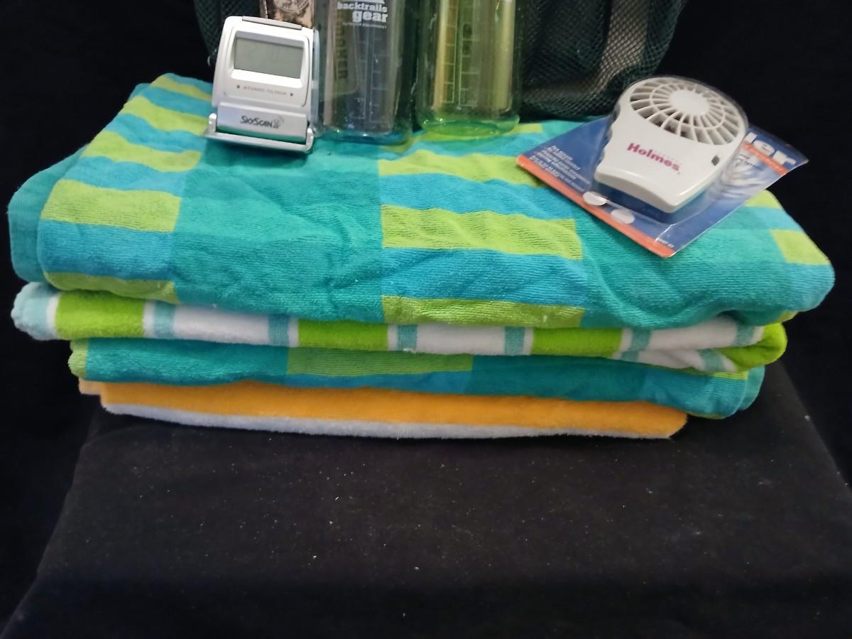 Let's go to the beach! Beach towels, Holmes pocket cooler, brand new net backpack and more