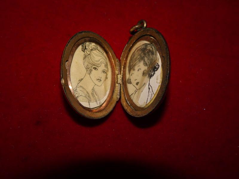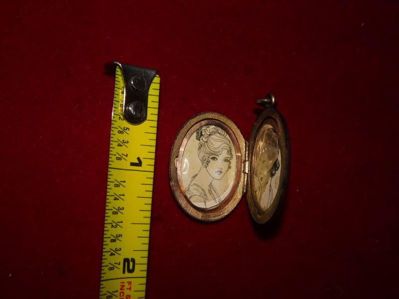 Letter G Gold Tone Locket, Photograph Locket, Hand Drawings inside
