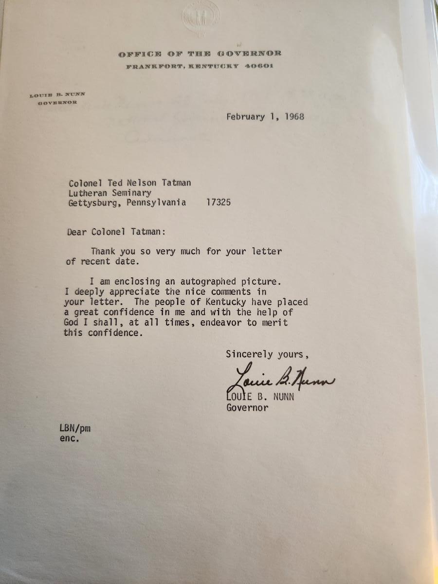 Letters & Photograph from Kentucky Governor Louie B. Nunn