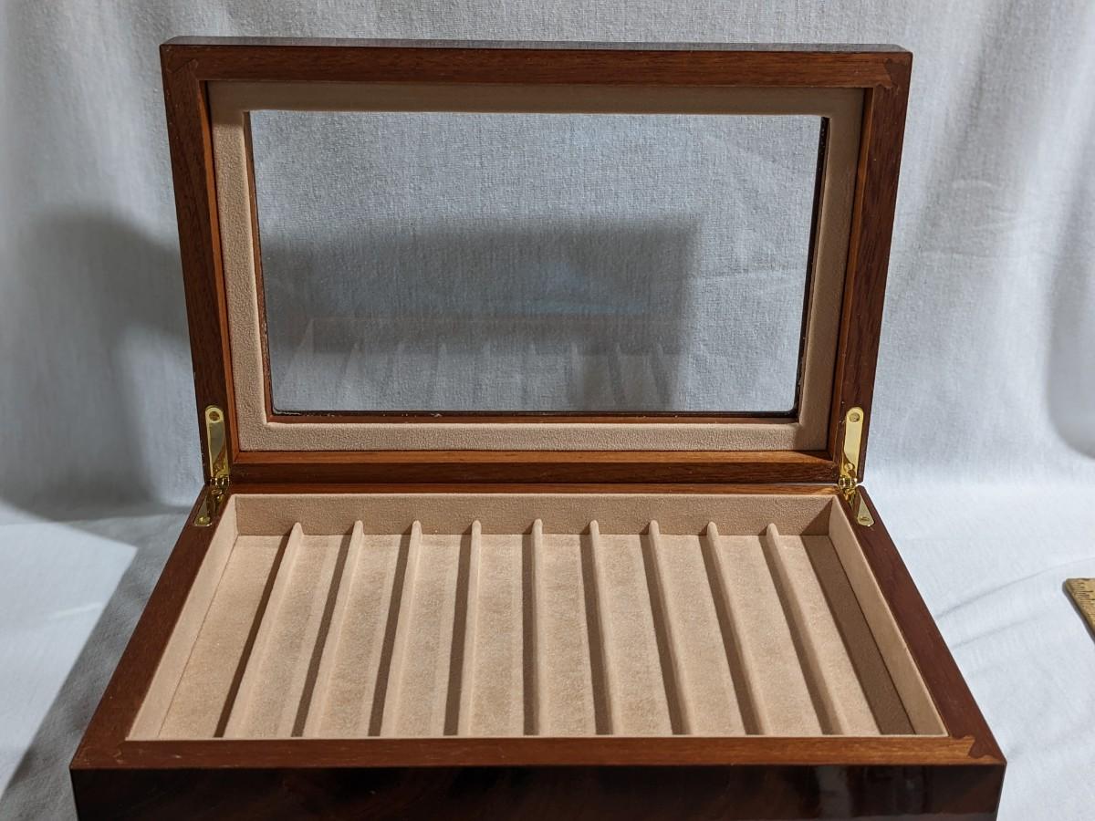 Levenger Glass and Rosewood Fountain Pen Display Case for 10 Pens, Beautiful Handcrafted from Italy