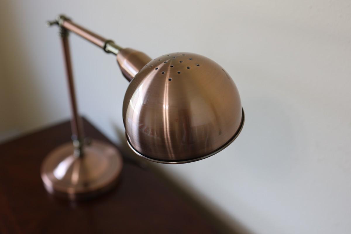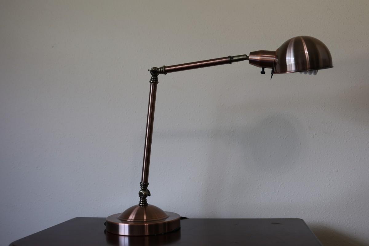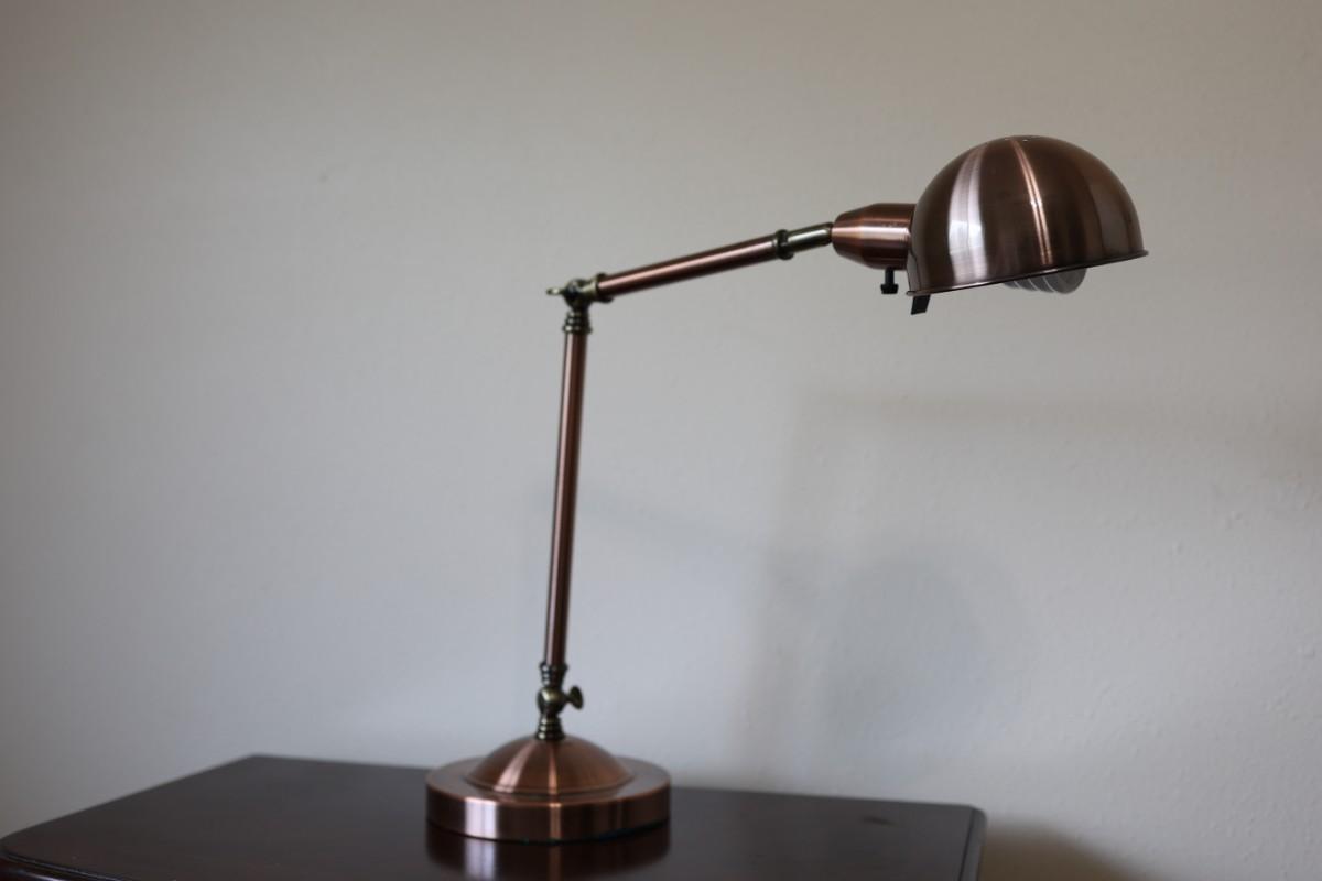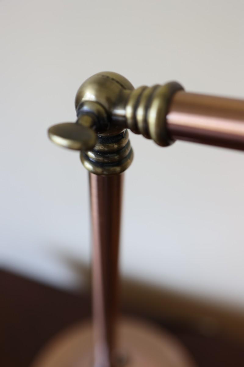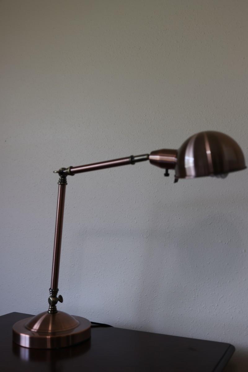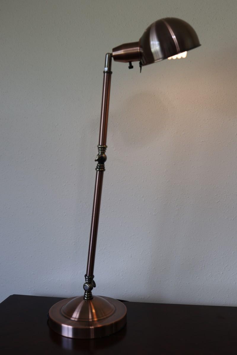 Lamp can be adjusted at base knob and center, along with the light as well.