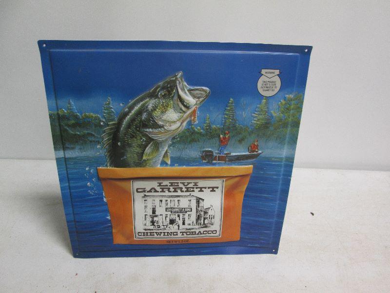 Original Advertising Display Sign Levi Garrett Chewing Tobacco Bass Fishing