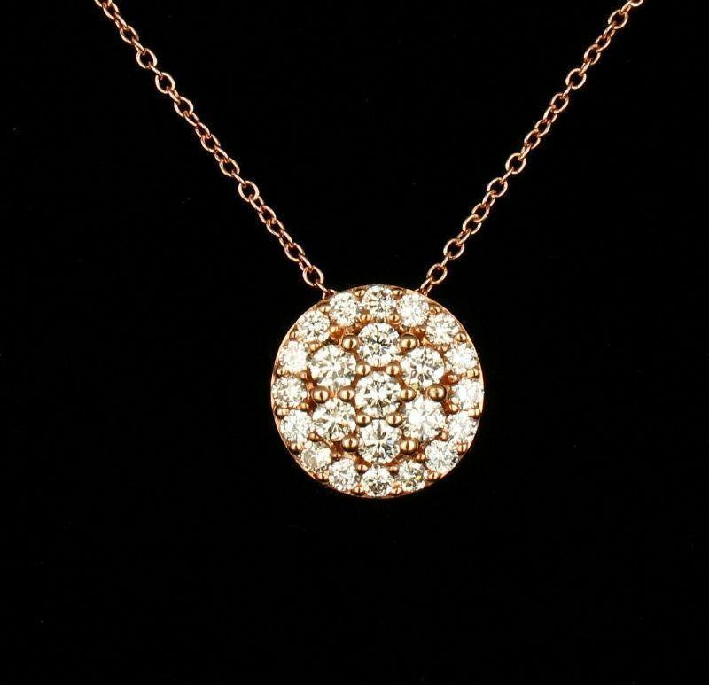 LEVIAN ROUND NATURAL 5/8ctw DIAMOND 14K STRAWBERRY GOLD CLUSTER PENDANT NECKLACE