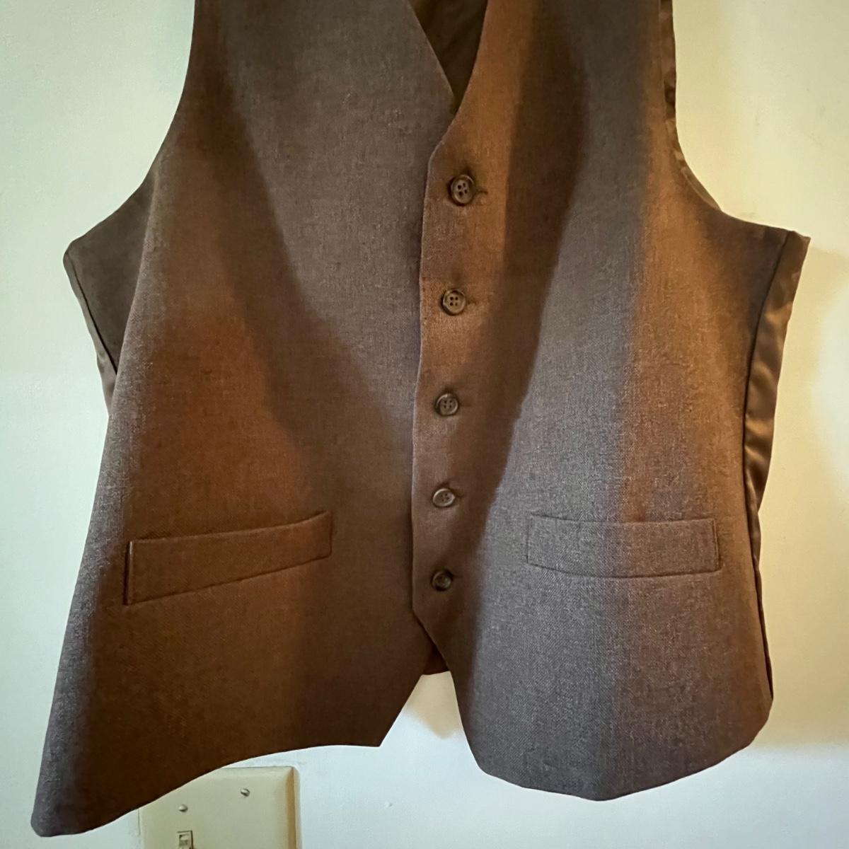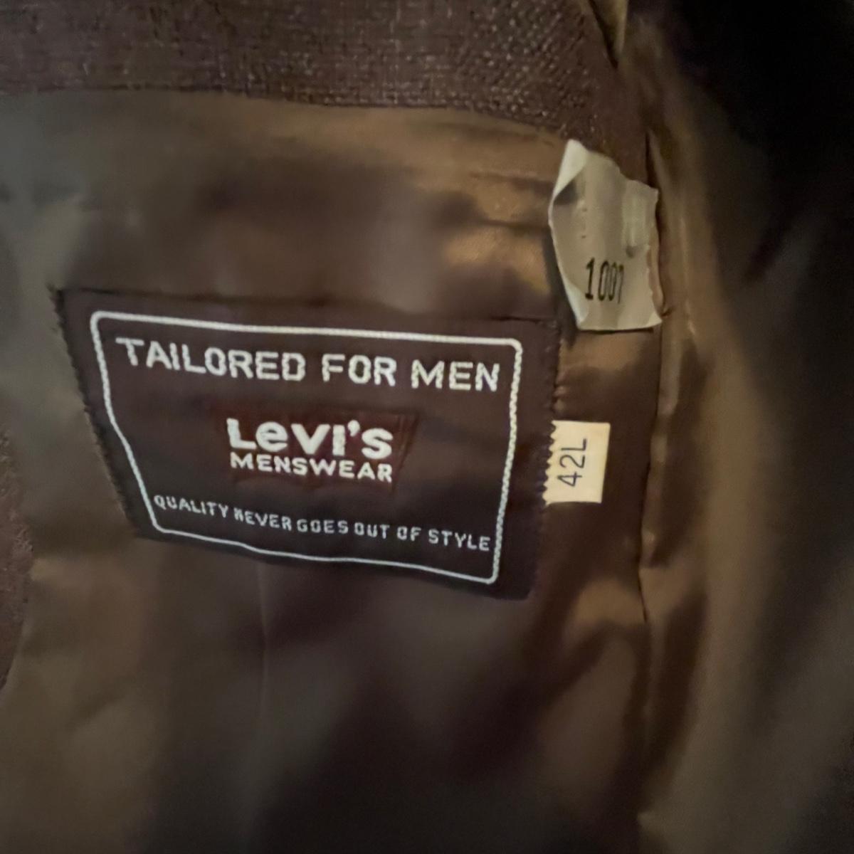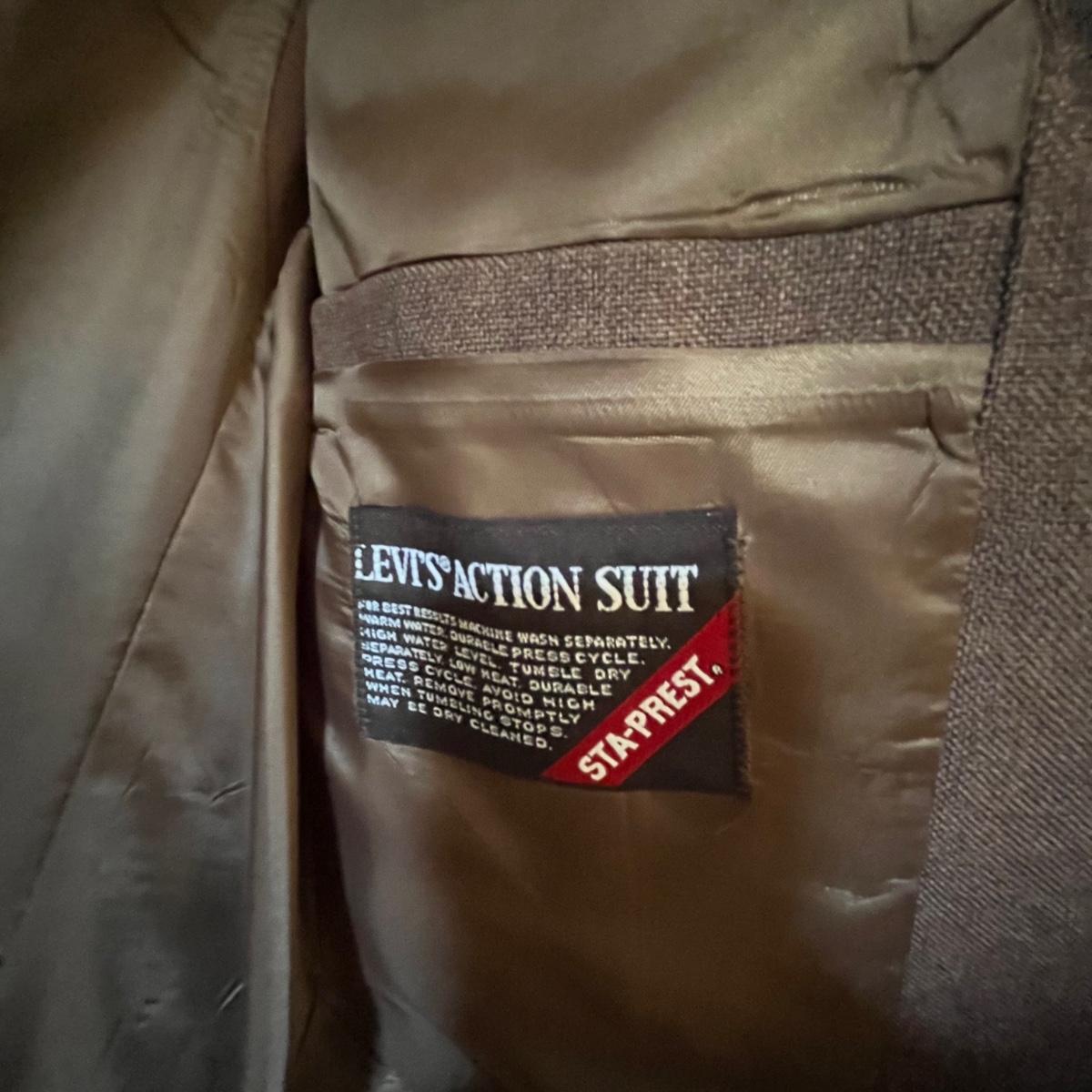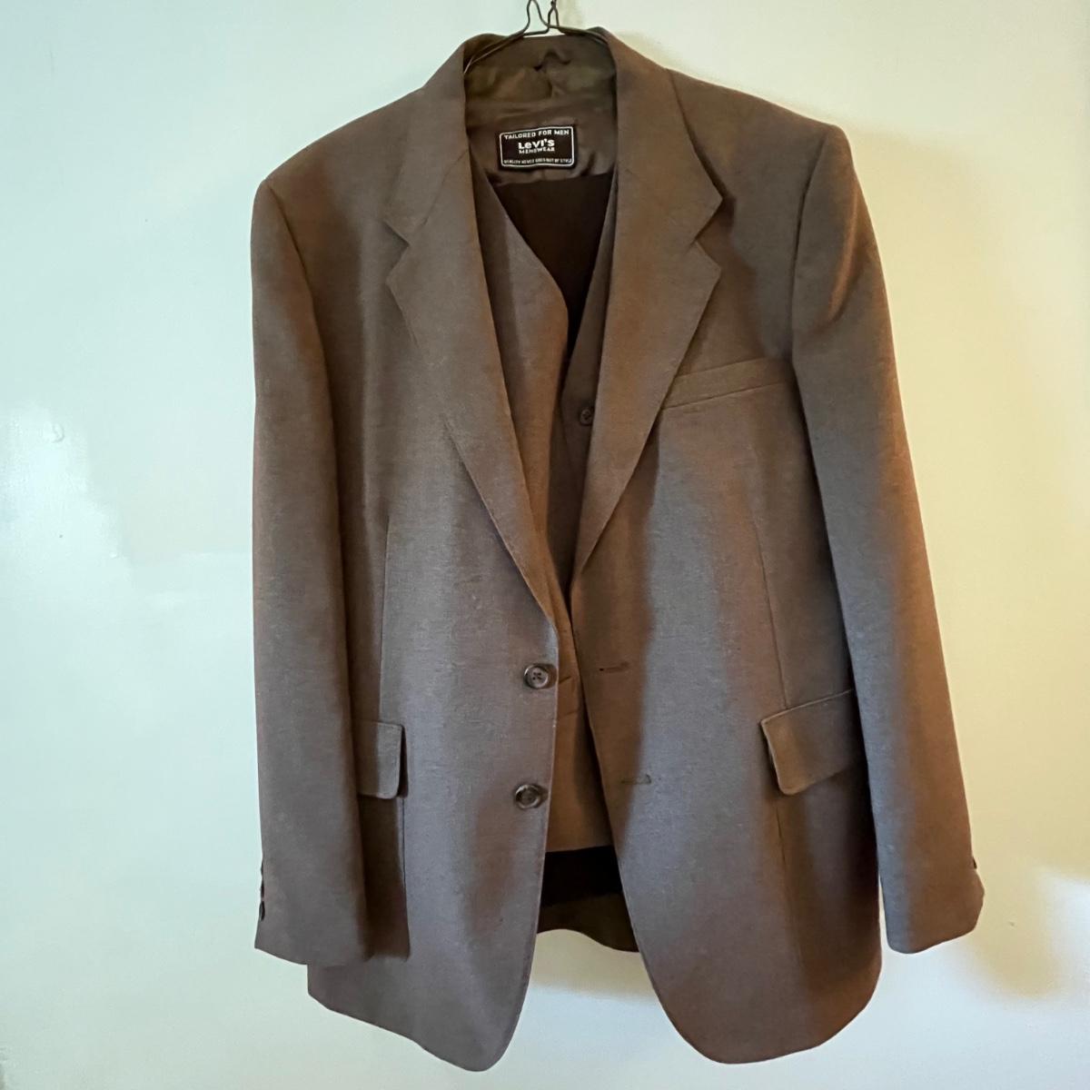 Lot includes a Levi’s Action Suit brand Jacket and Vest size 42L and a pair of pants that are unmarked.
